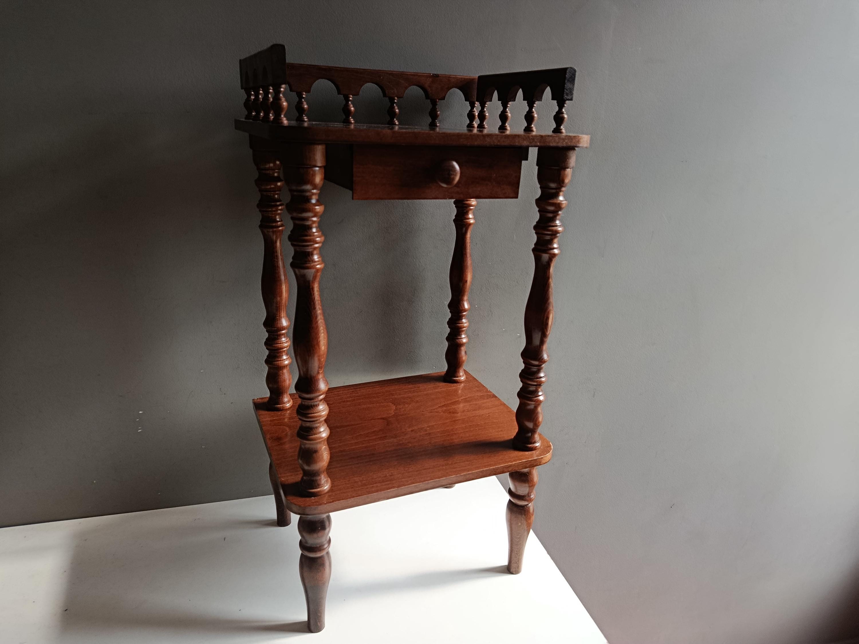 Vintage side table with drawer and shelf turned wood / stand displa...