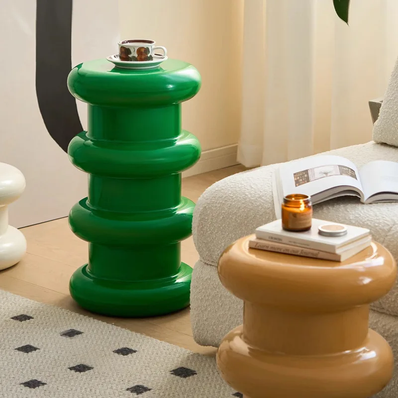 Sofa Side Table Double Layer Side Table Stable Round Shoe Stool Creative Nordic Cream Stool for Livi...