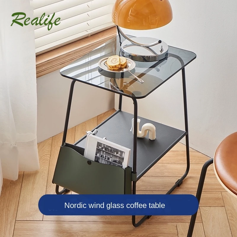 Realife Nordic Minimalist Sofa Side Table Small-sized Coffee Table Square Bedside Table Storage Rack...