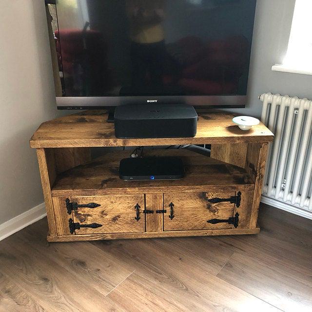Corner Solid Wood TV Unit Industrial TV Stand * Rustic Handmade TV Unit * Timber TV Stand * Chunky T...