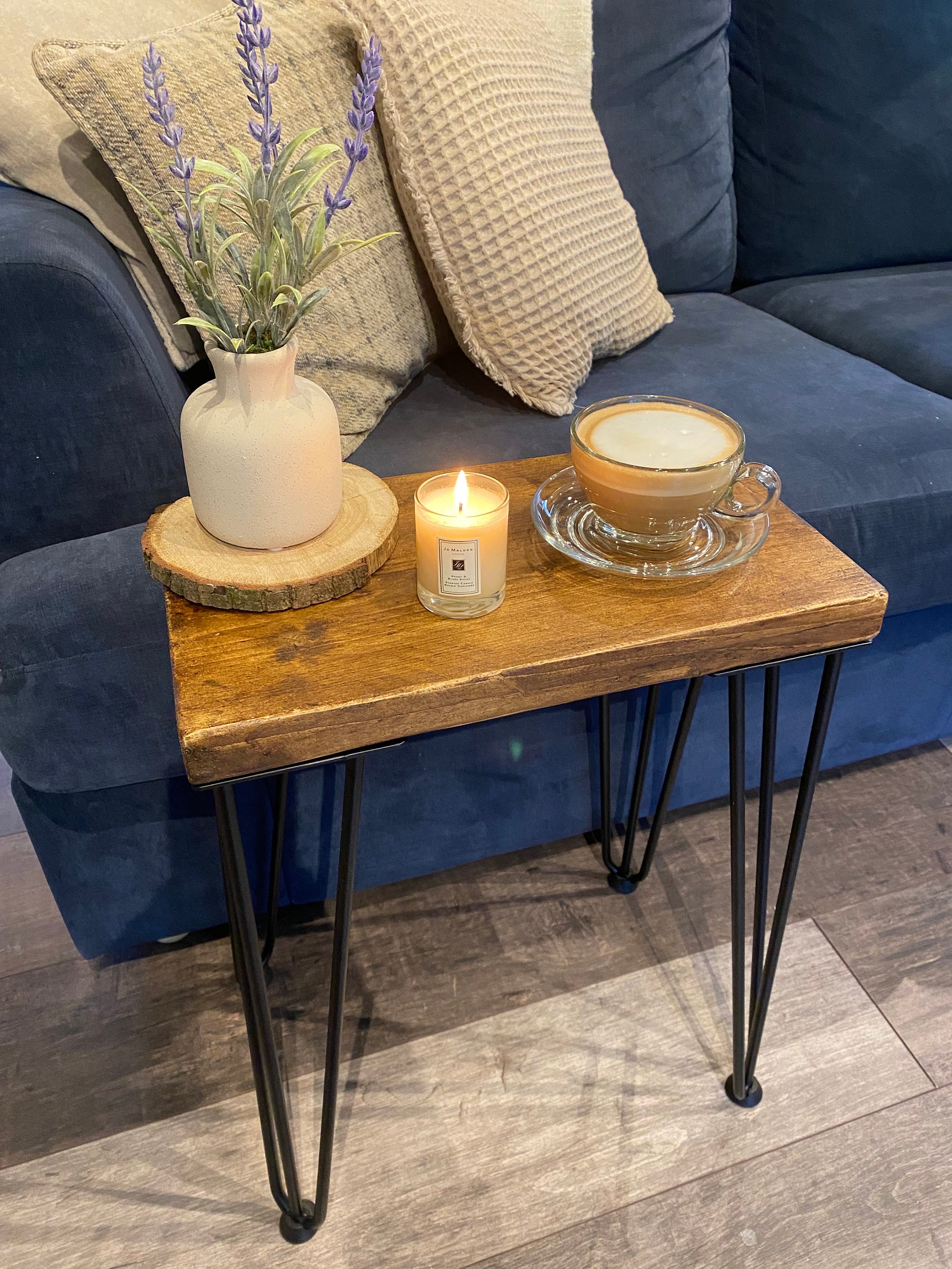 WOODEN SIDE TABLE with Hairpin Legs - Coffee Table - Solid Pine Tab...
