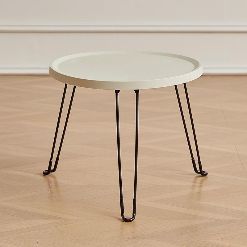 Modern Small Round Folding Coffee Table Tray Surface, 3 Legs, Suita...