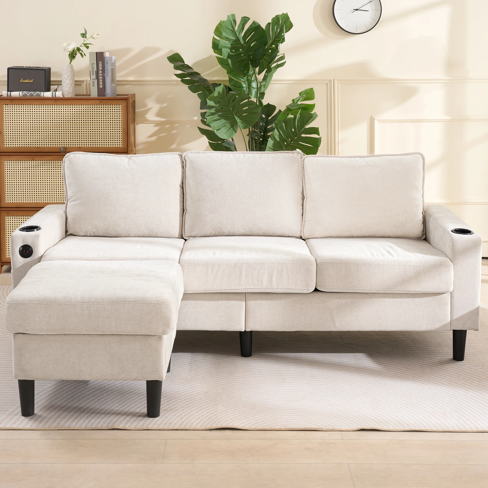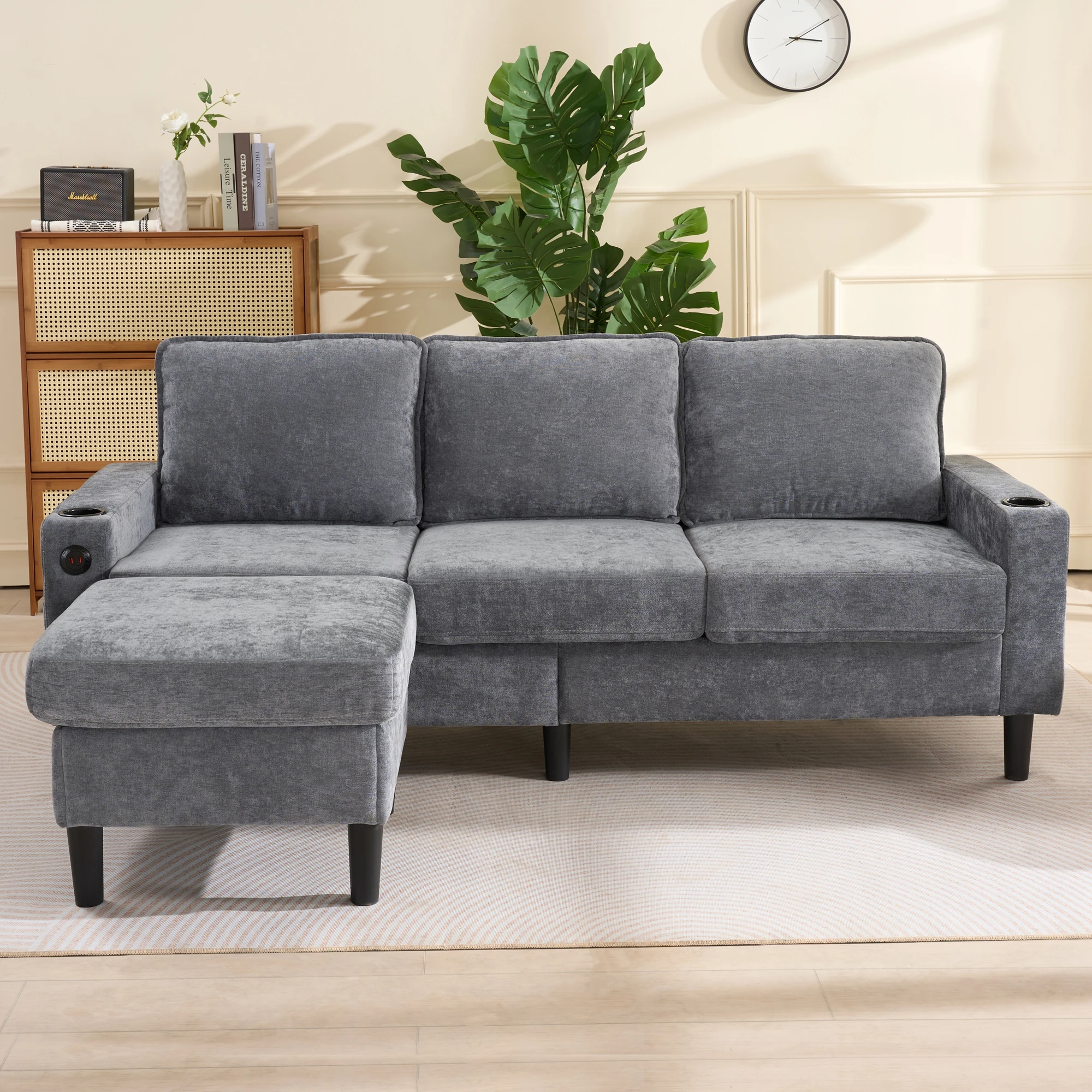L-Shaped Couch Sofa, Corner Sofa 3 Seater Sofa, Sectional Sofa Couches With USB, Cup Holder, For Apa...