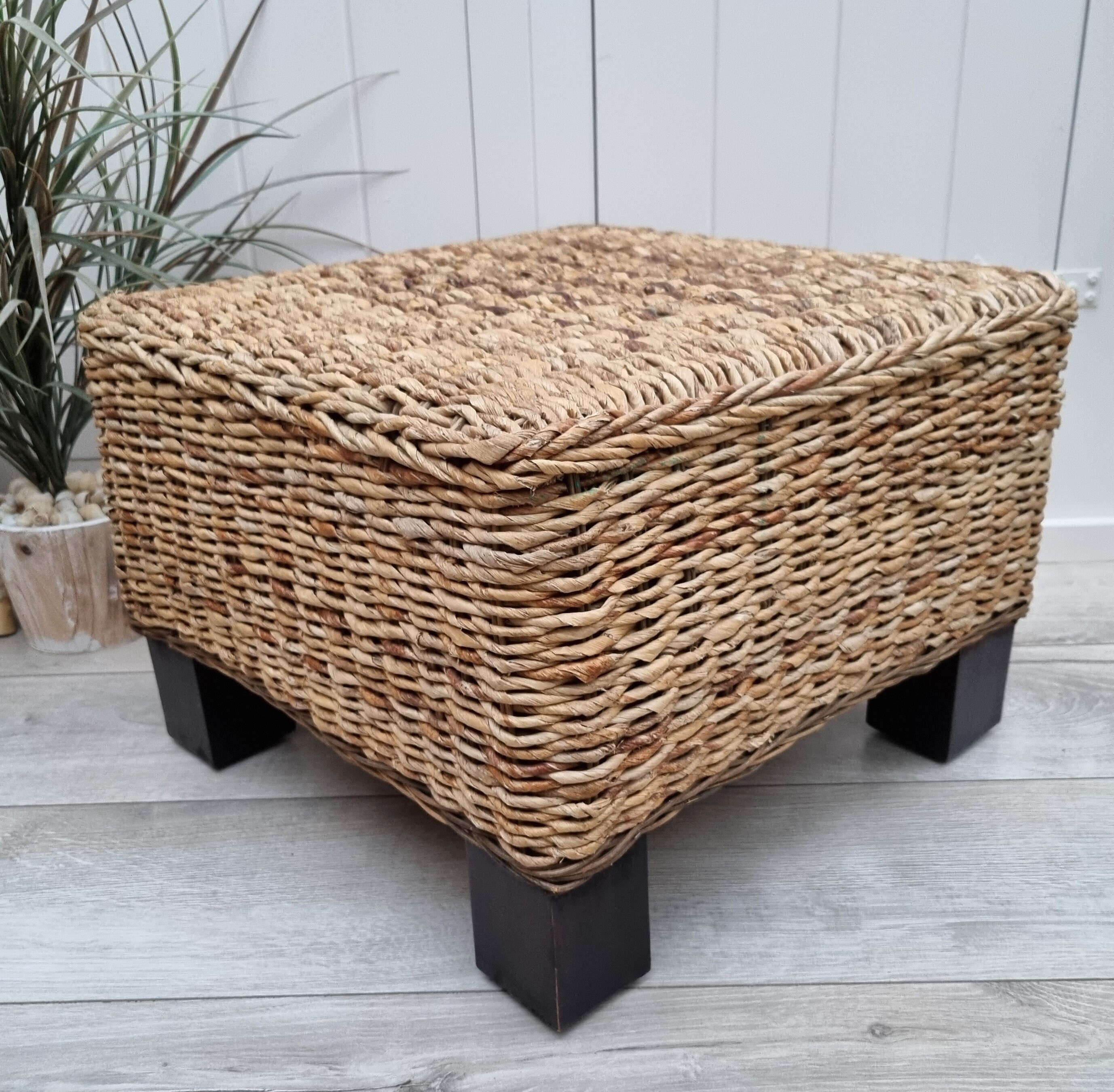 Square Wicker Ottoman, Bamboo Stool, Wicker Footstool, Plant Stand, Side Table, Coastal Decor, Beach...