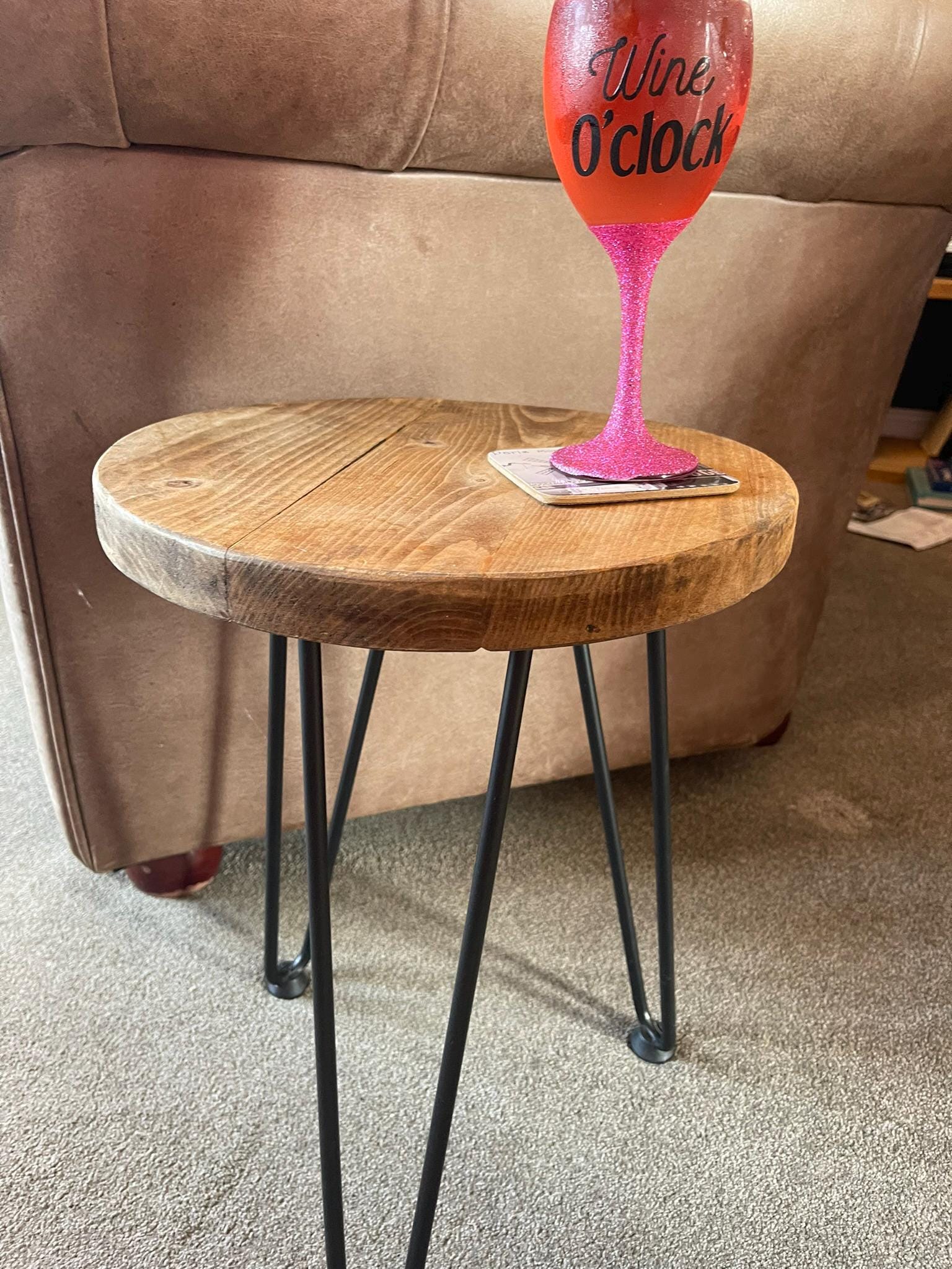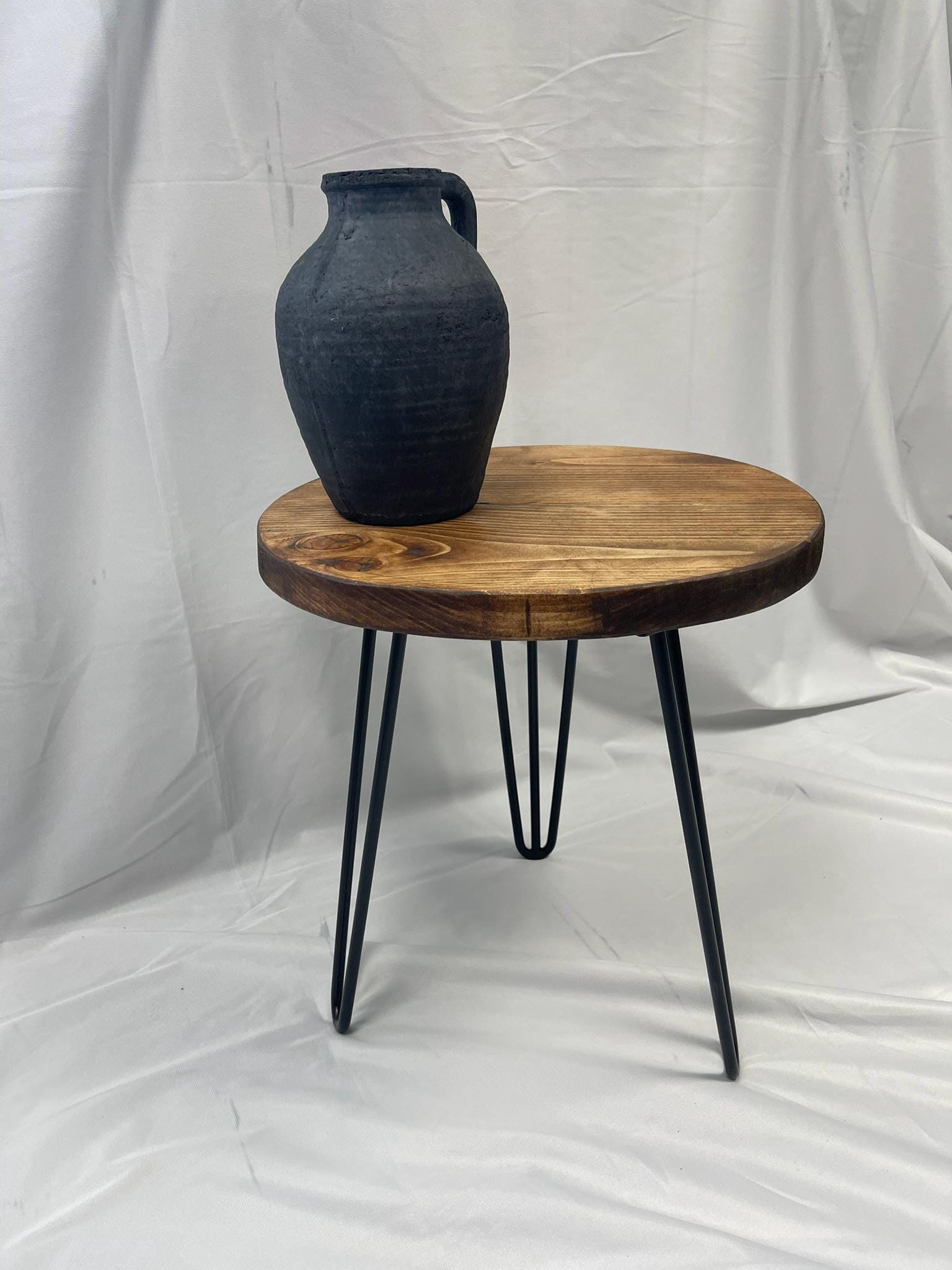 Solid Wood Round End Table with Hairpin legs Overall height: 44cm (Approx) Overall Width: 40cm (top ...