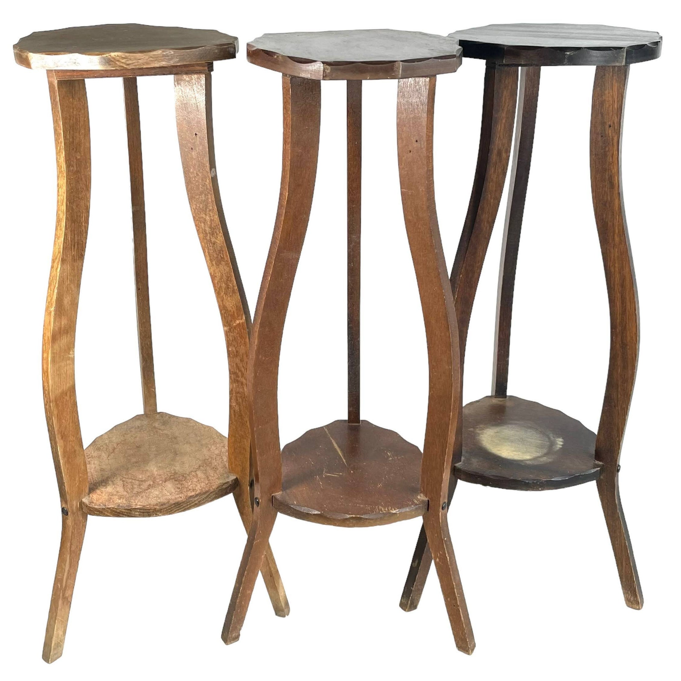 Vintage Double Plant Stand French Wooden Wood Side Table Flower Pot...