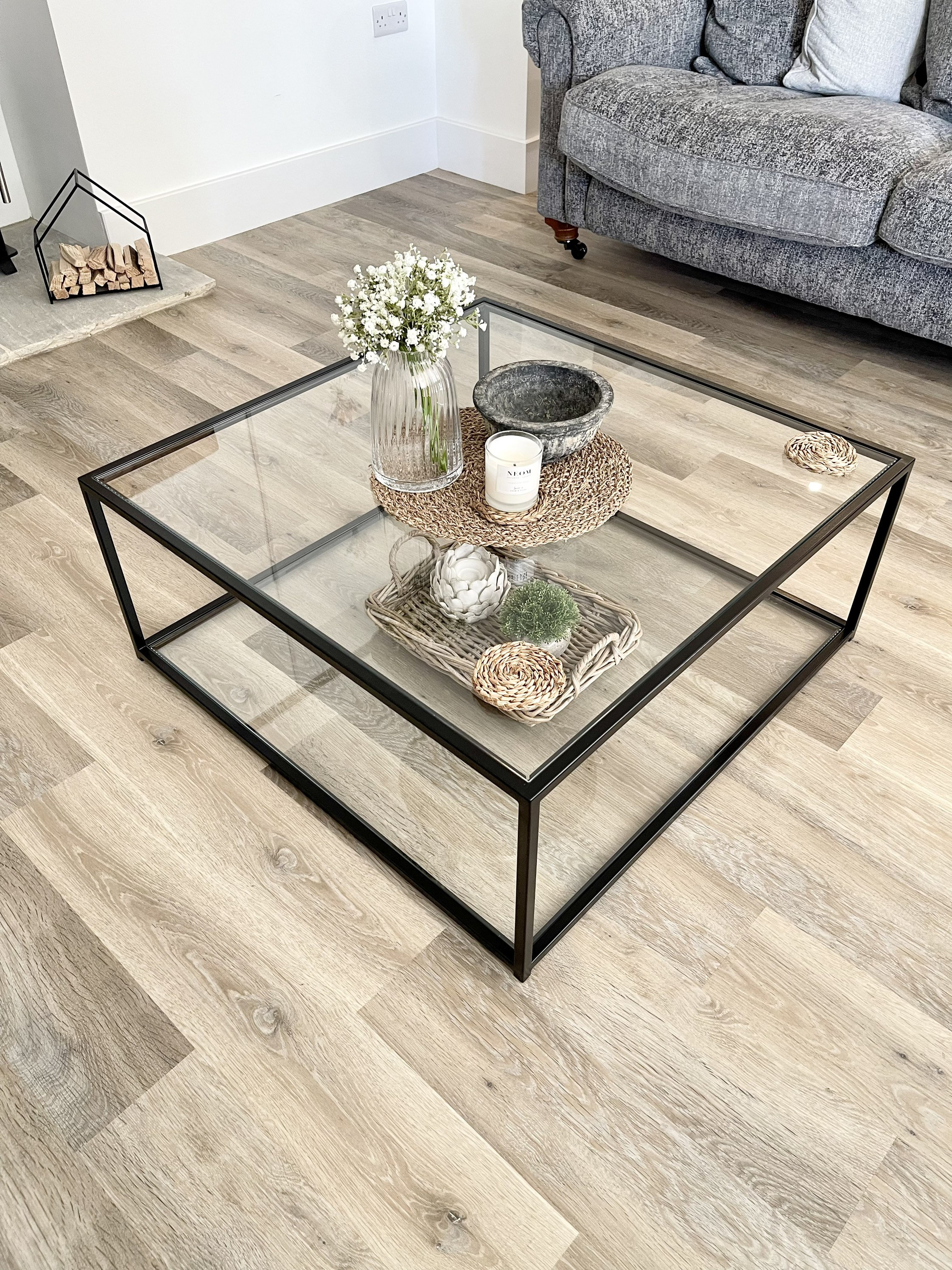 Mila Square Metal Glass Coffee Table With Shelf - Black