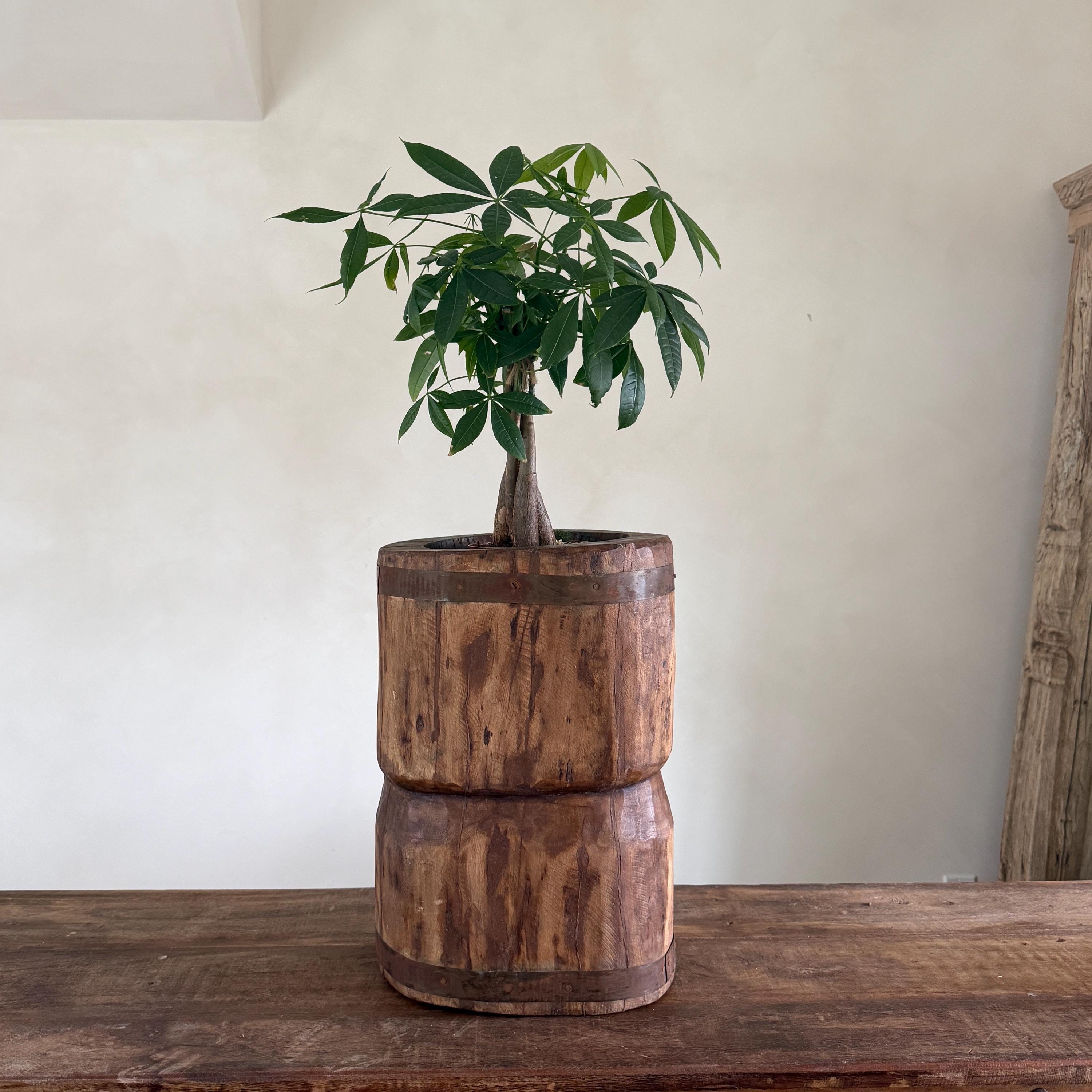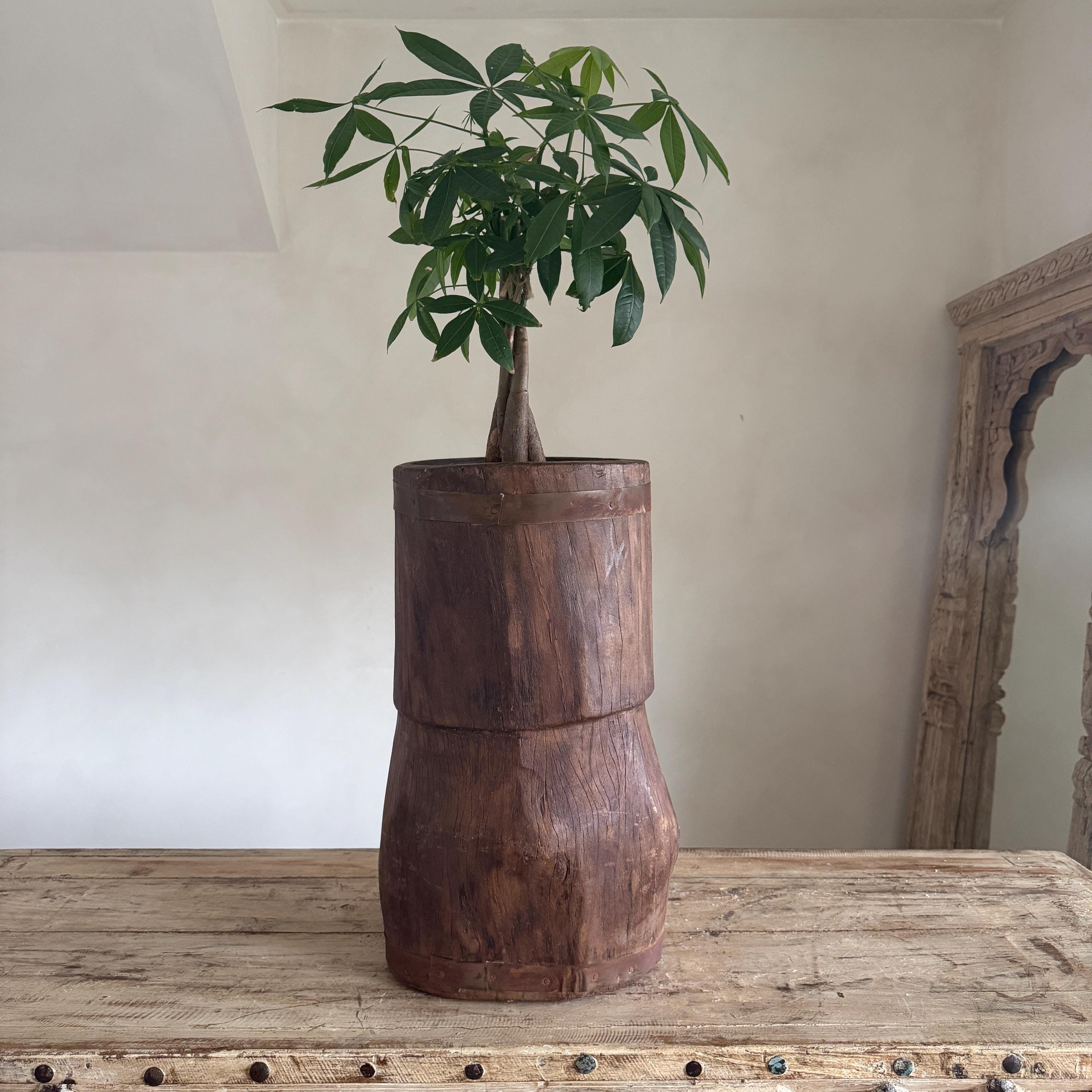 Antique Wooden Ukhali Planter | Rustic Mortar Side Table