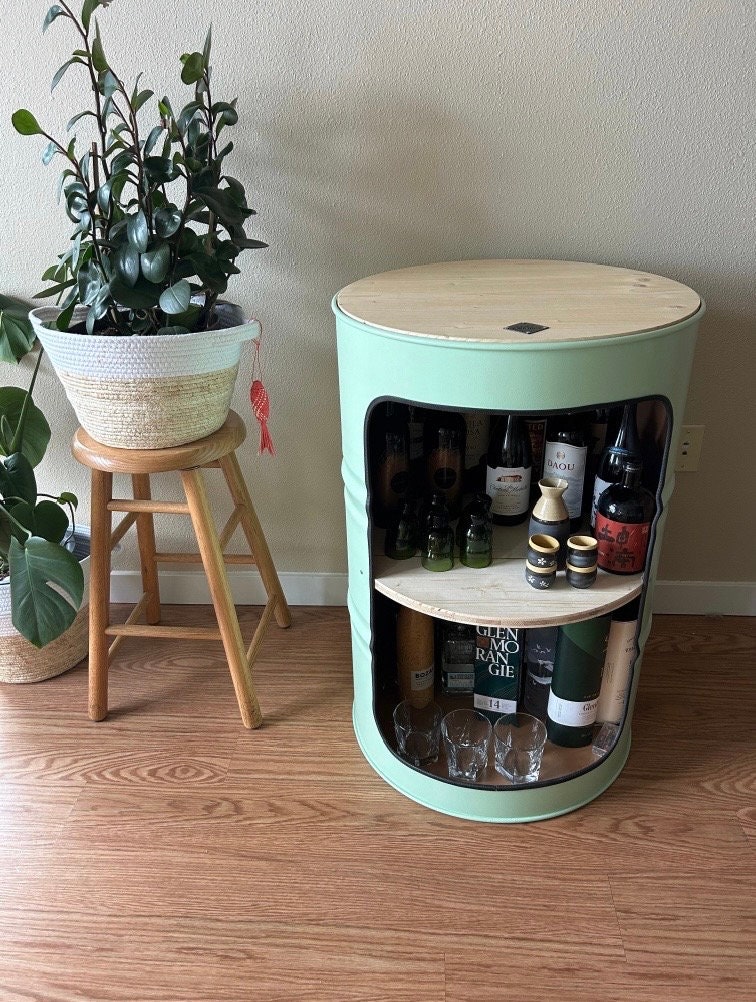 Oil drum bar - usable as a bar, cabinet, shelf, standing table, sid...