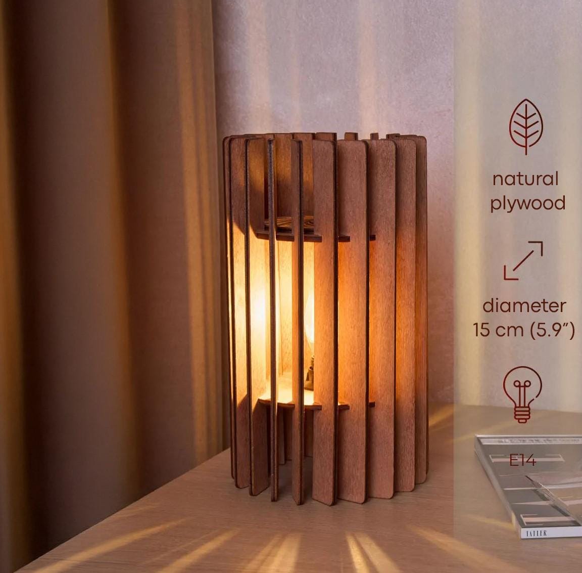 Wooden table lamp lantern, Wooden bedside table, Geometric table la...