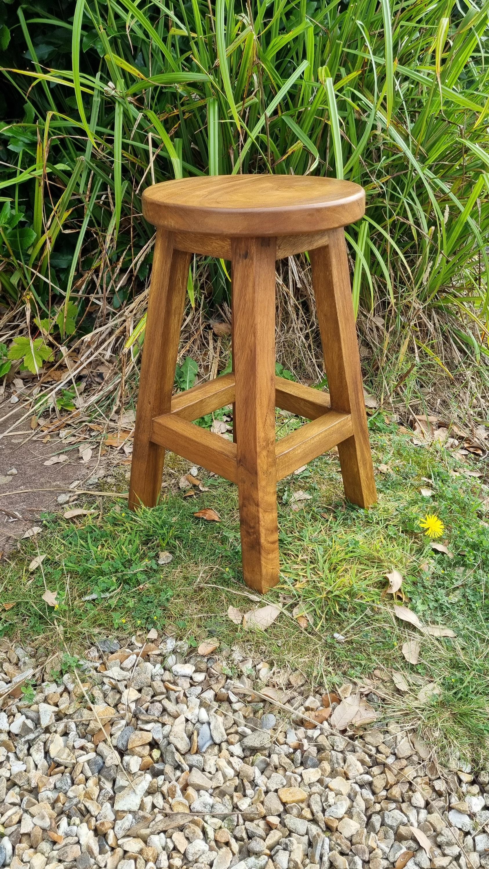 A rustic hand carved stool, plant stand or lamp table made from solid Acacia wood. Expertly hand cra...