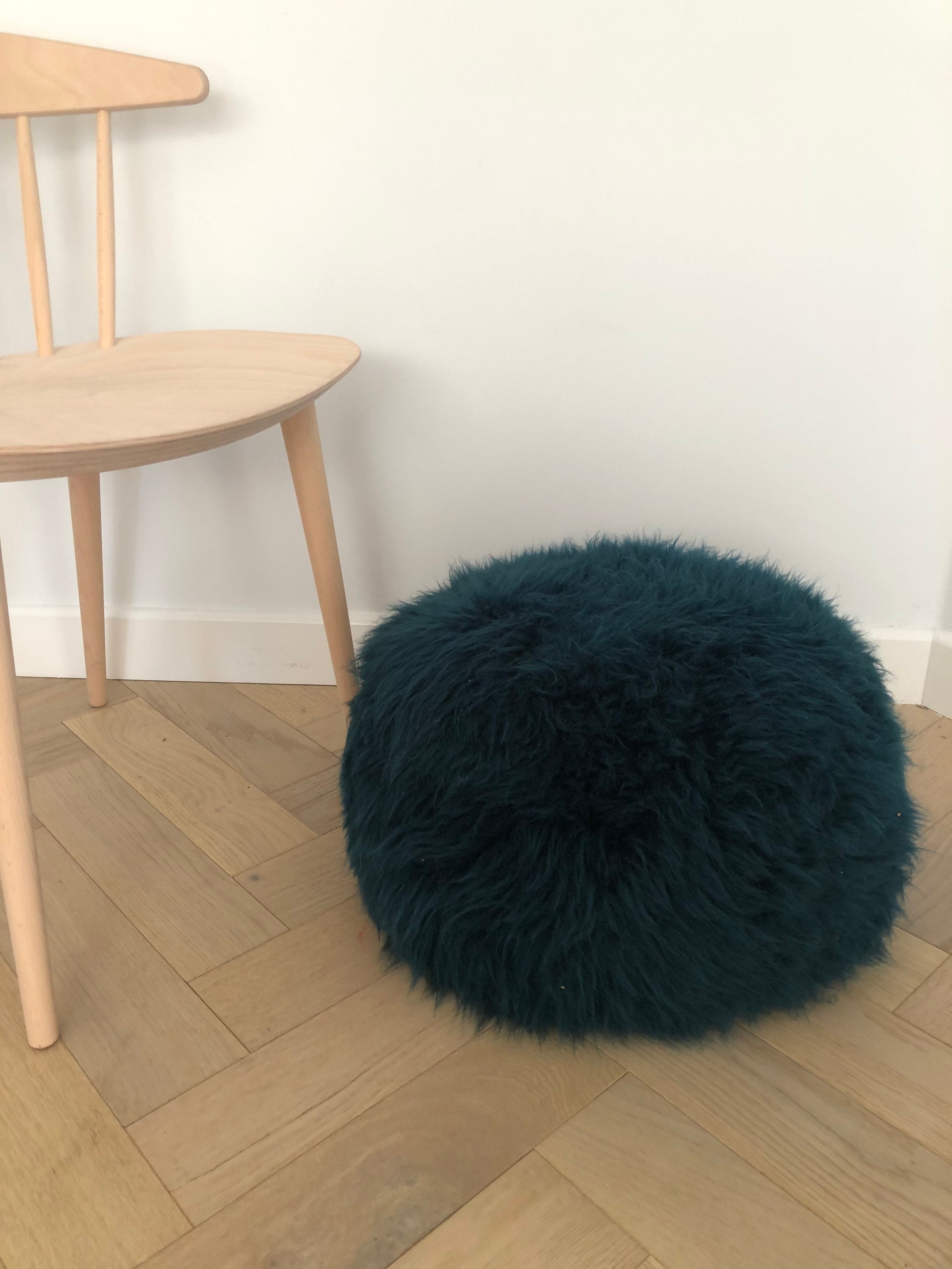 This is our teal green British genuine sheepskin pouffe , it is wonderful to sink your feet into! Ma...