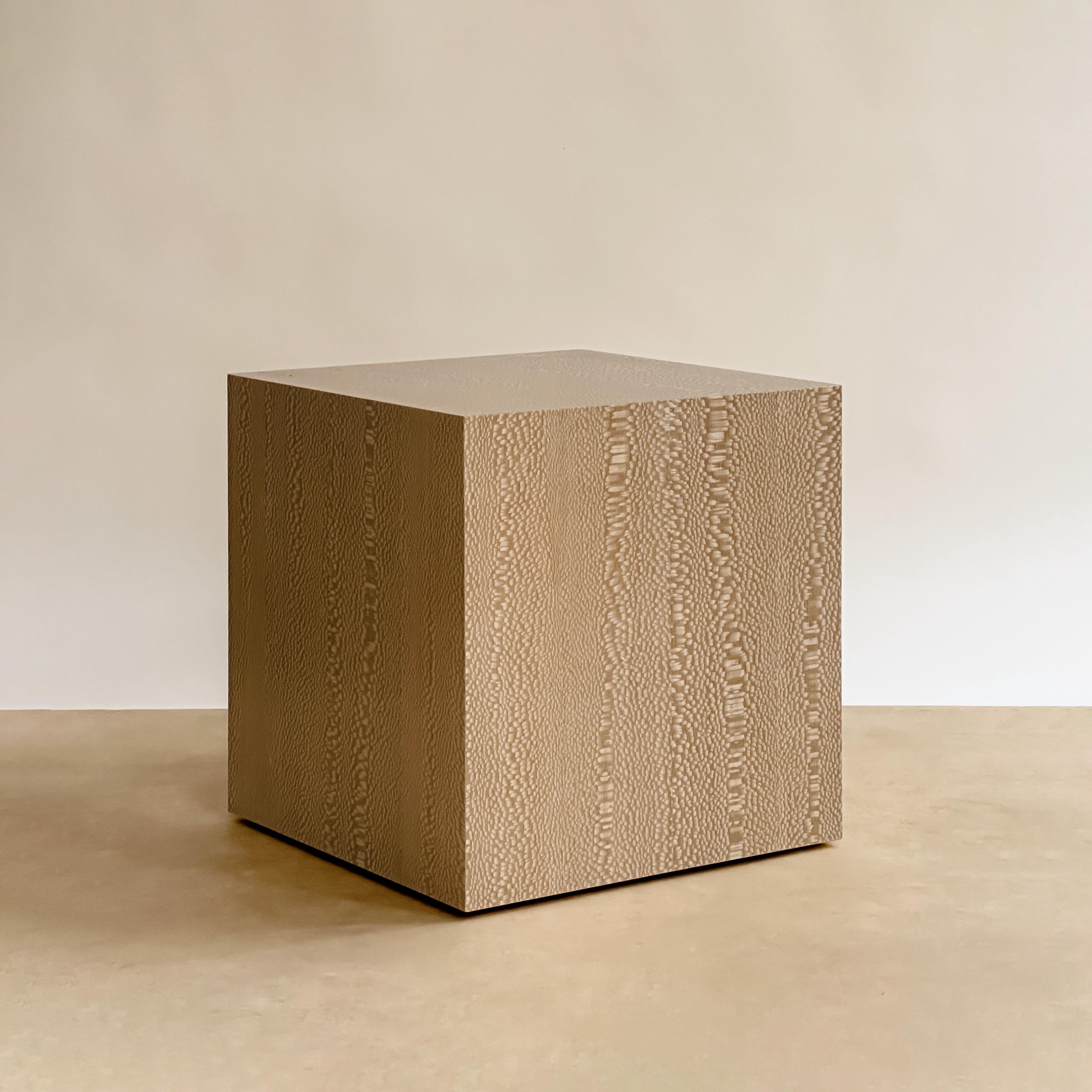 Beige Lacewood Plinth Cube Side Table: Minimalist Coffee Table