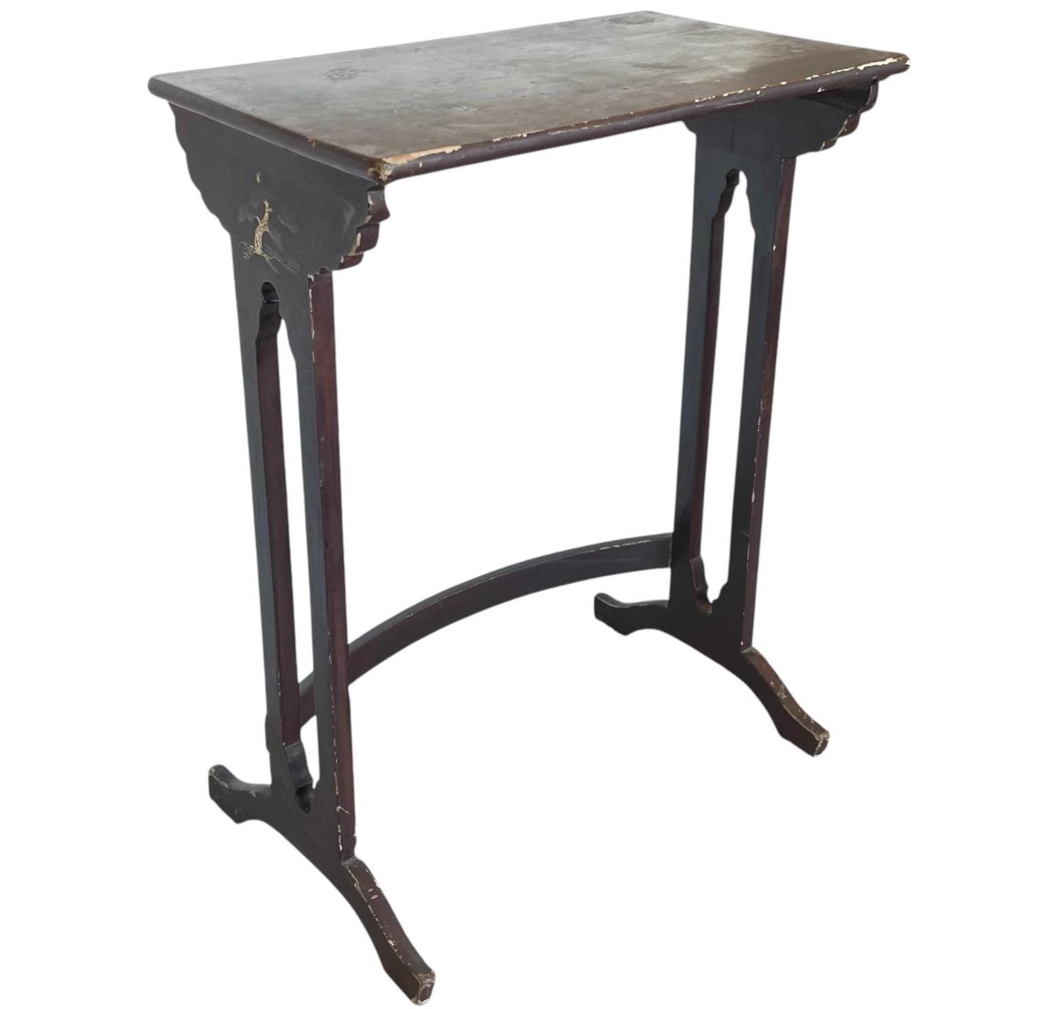 An Asian vintage wooden traditional telephone stand or side table. Some heavy wear but still strong ...