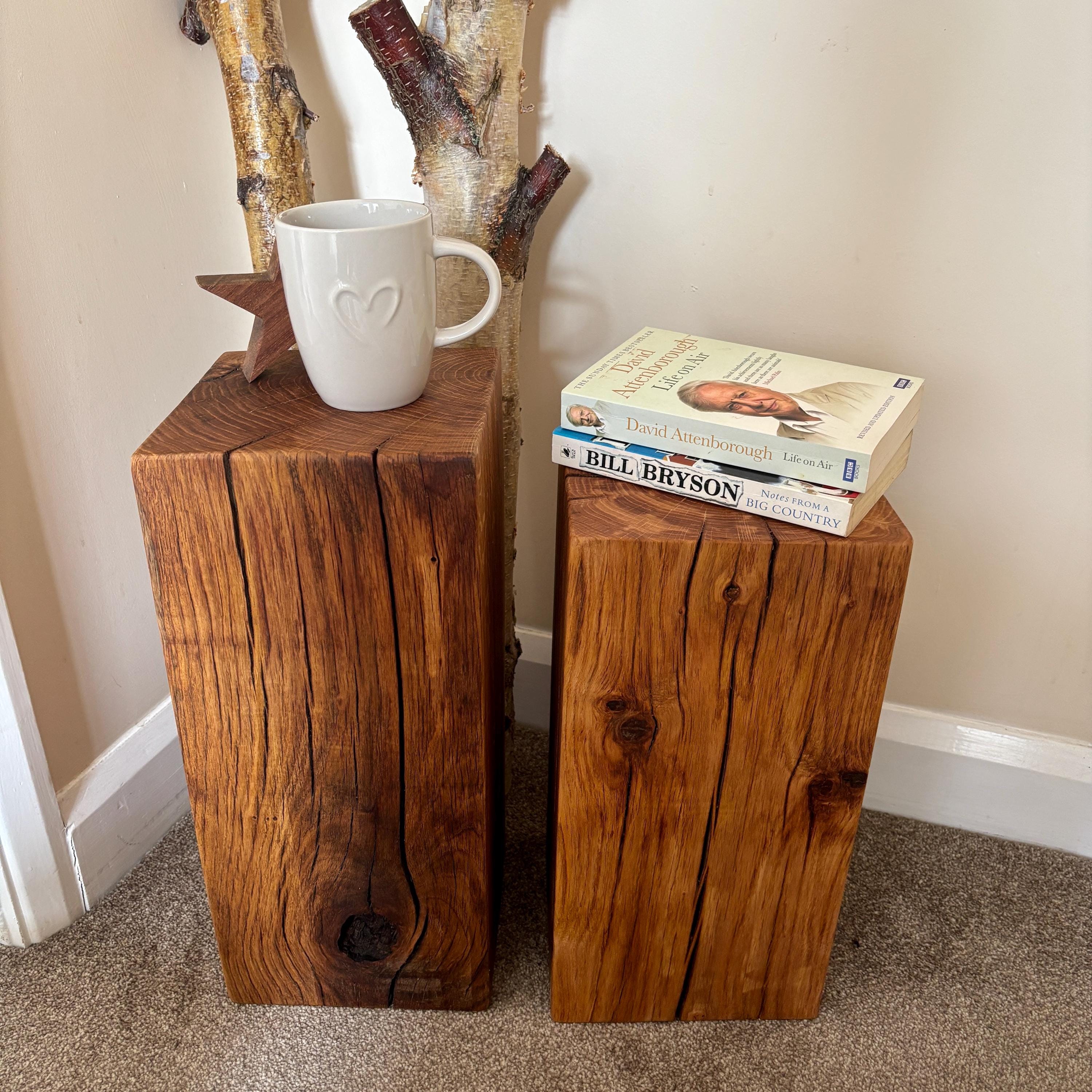 Oak & Iroko End Tables, Rustic Sculpture Display Plinth, Living...