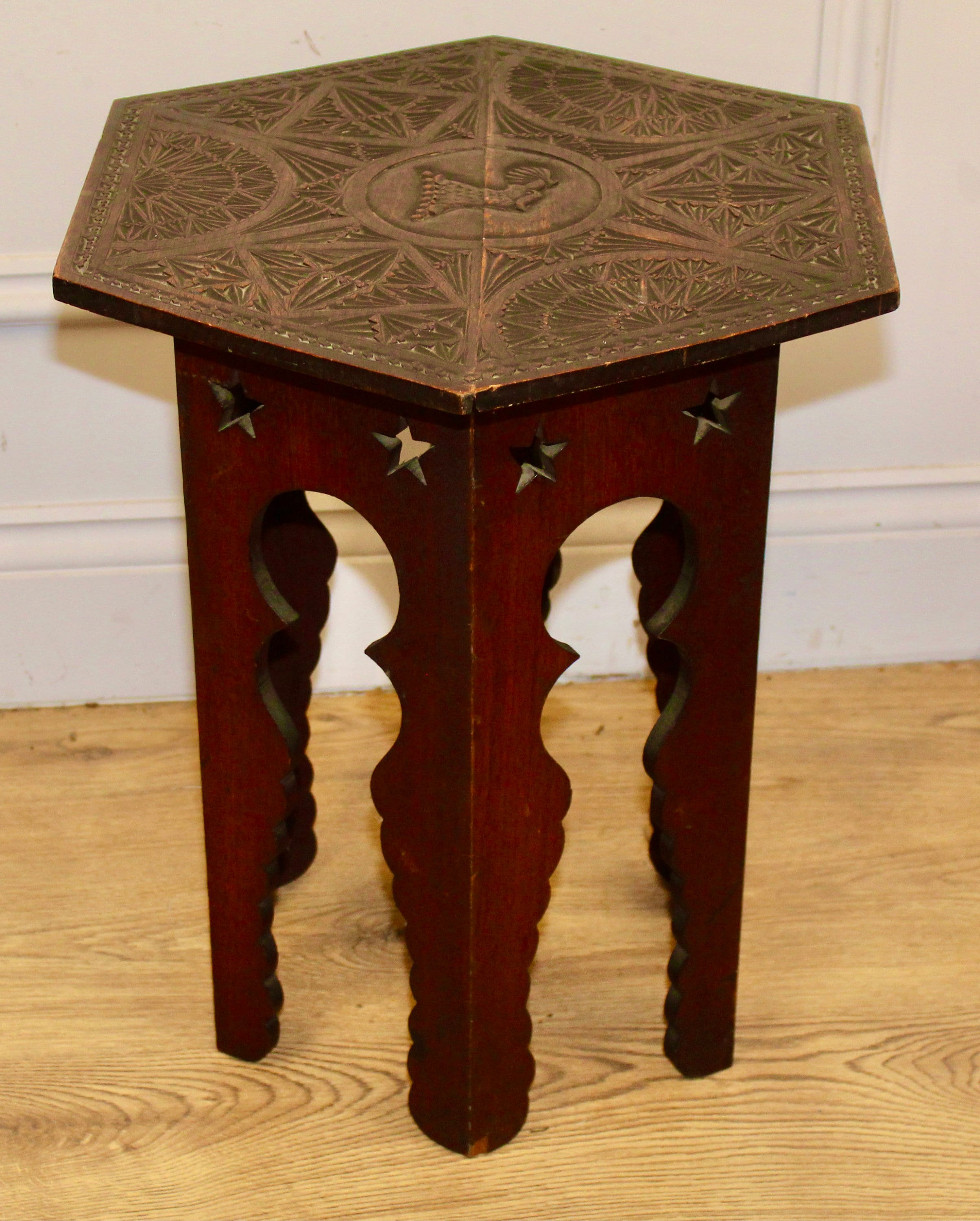 Arts and Crafts oak antique moorish side table vintage wooden victo...