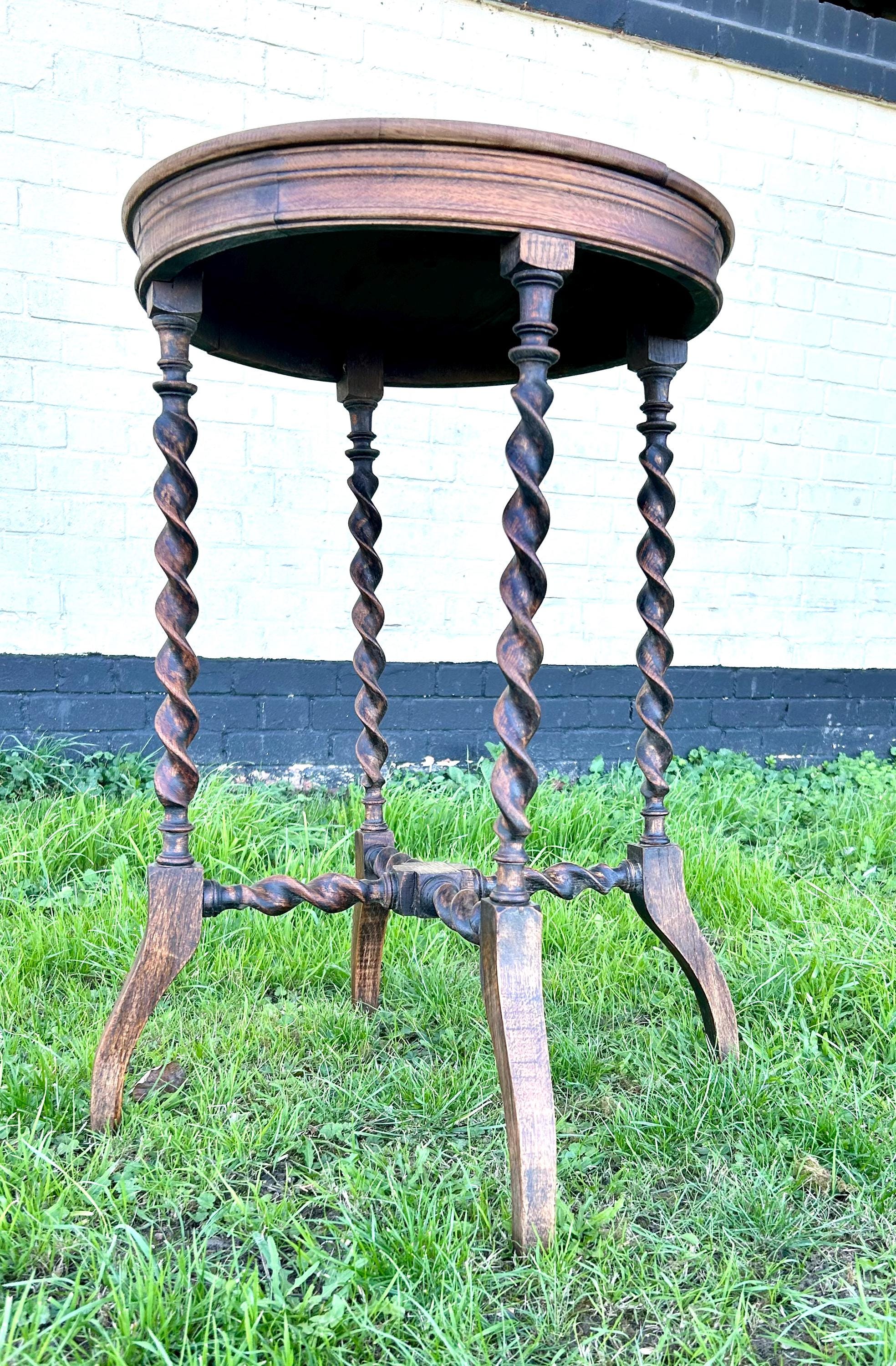 Antique barley twist oak side table vintage arts and crafts hall de...