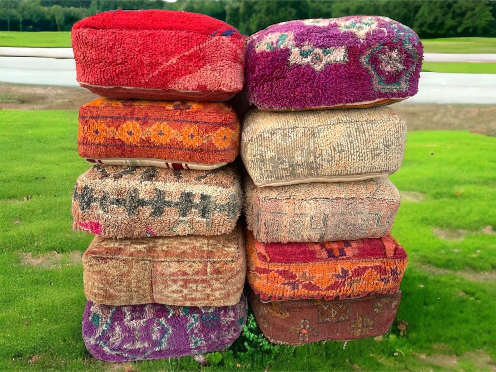 Pouf, Outdoor Furniture Pouf, Vintage Moroccan Ottoman, Outdoor Cha...