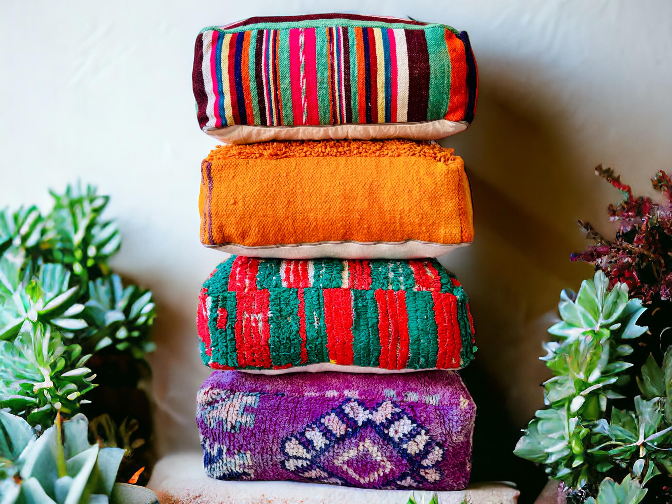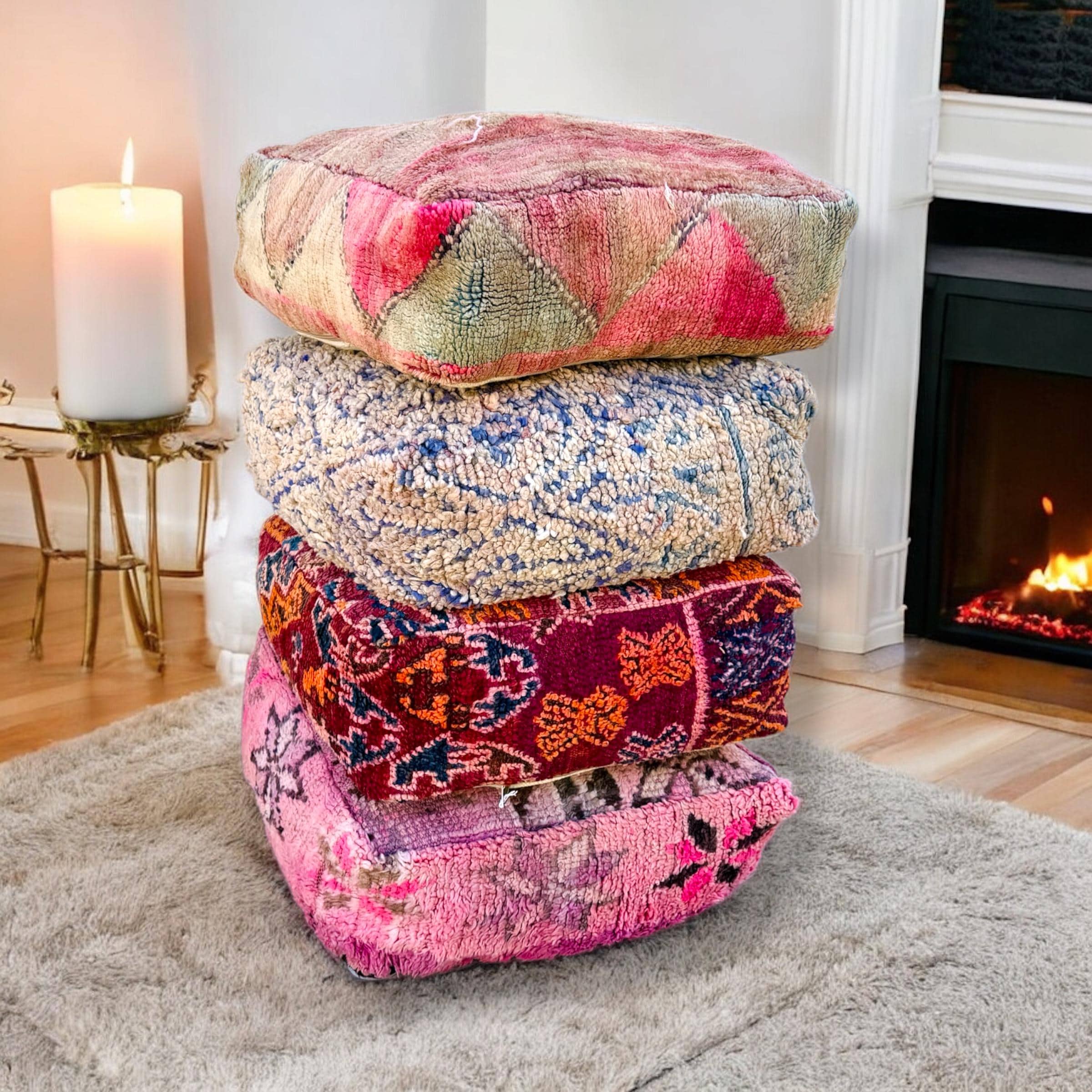 Moroccan Kilim Pouf, Floor Pouf, Vintage Moroccan Ottoman, Beni Ourain Square Pouf, Berber Floor Cus...