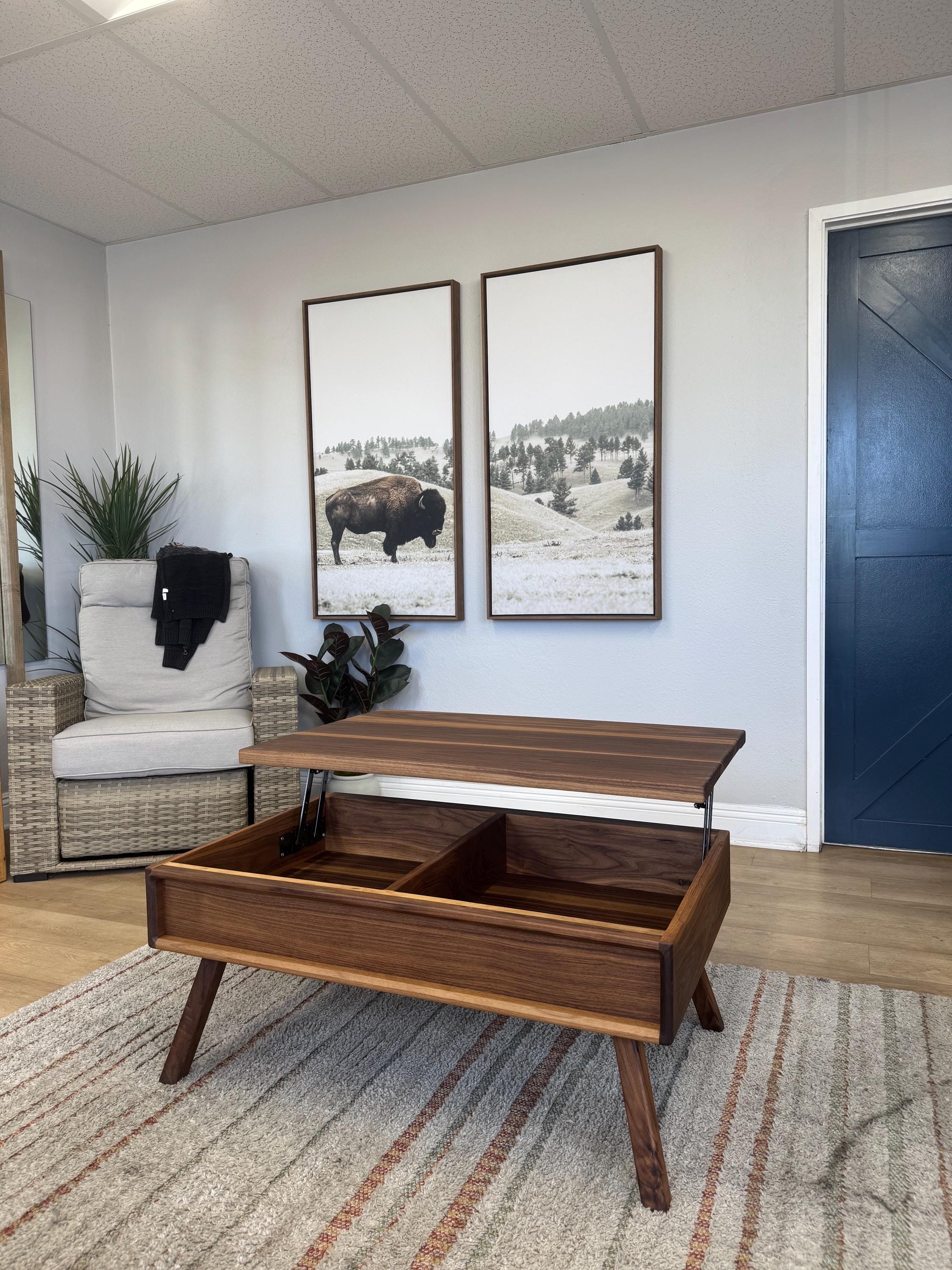 "Part of our mid-century modern collection, this lift top coffee table is simple with clean lin...