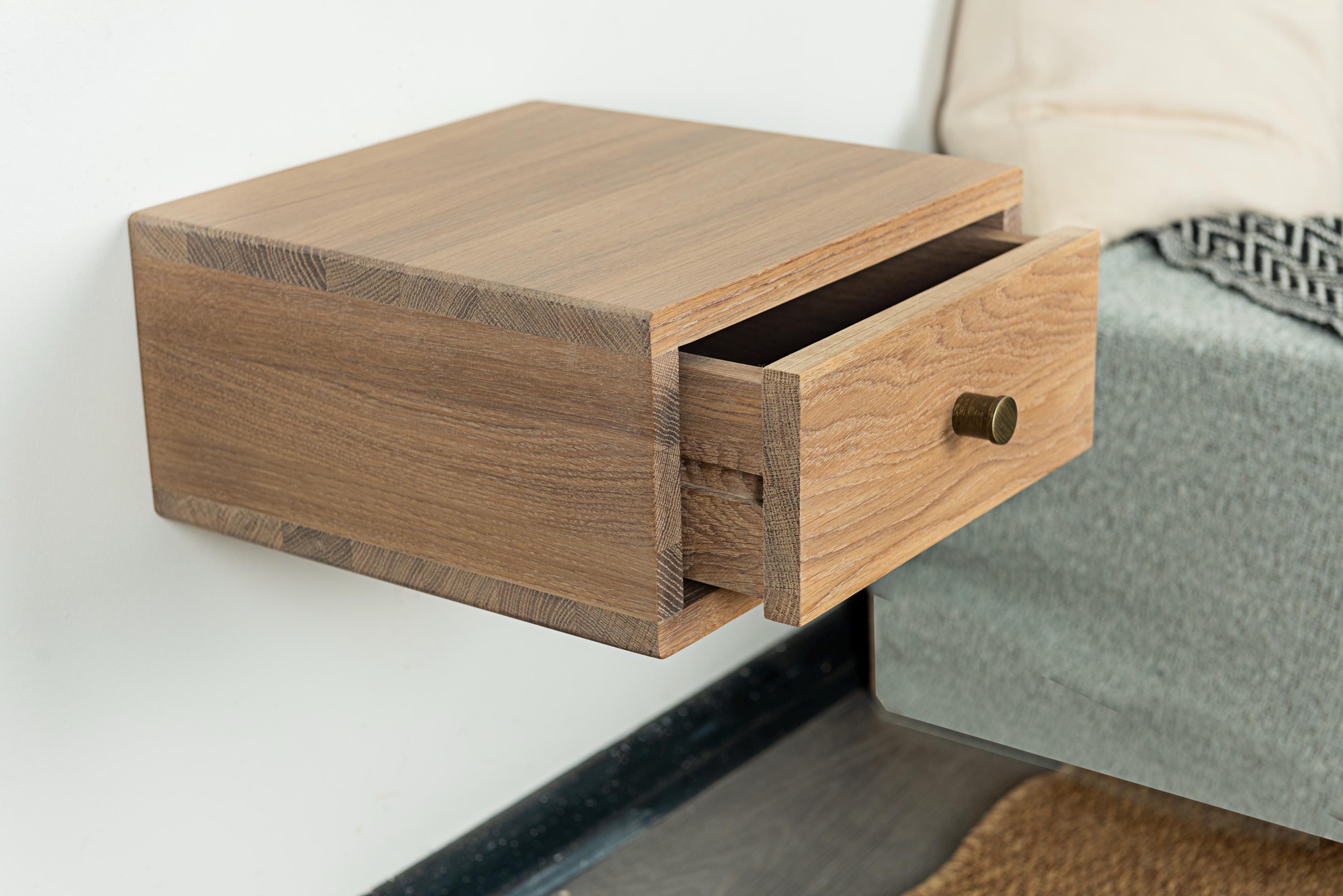 Floating Nightstand with Drawer in Solid Oak - Minimal Wall Hung Ni...