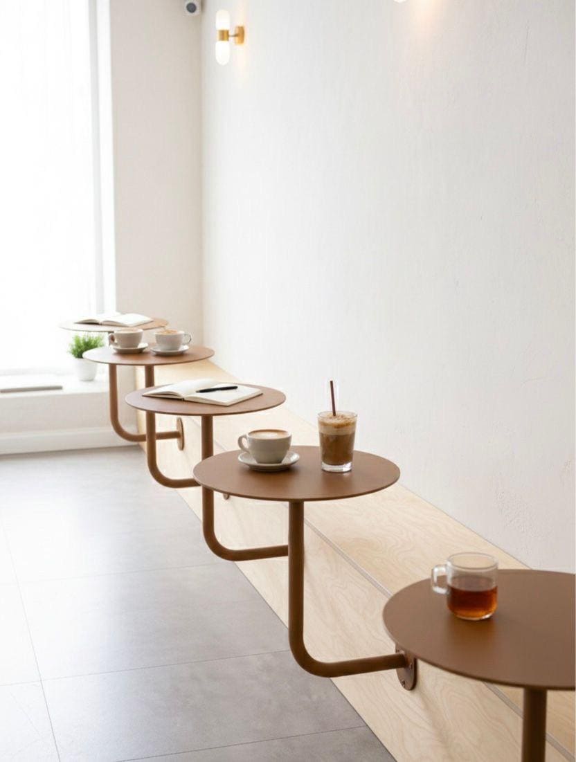 Wall-mounted Small Round Table, Wall-mounted Side Table, Dessert Shop, Café Booth, Industrial...