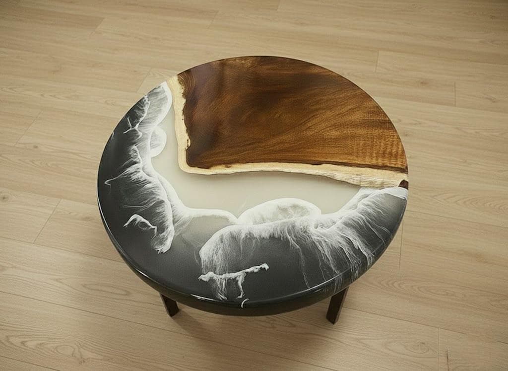 "️ The \"Cloudscape\" Round Epoxy Resin Coffee Table Transform your living spa...
