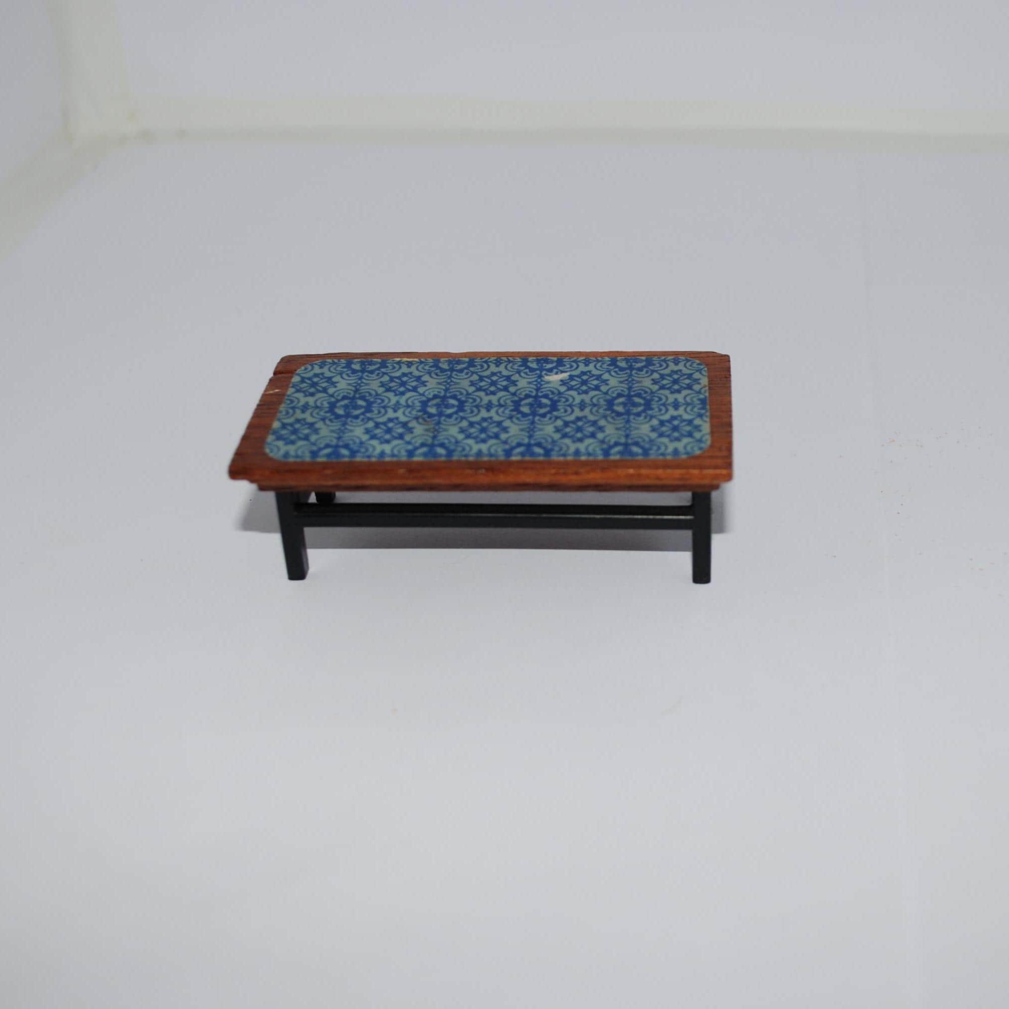 Small Lundby-style Vintage coffee table - wood with tile effect