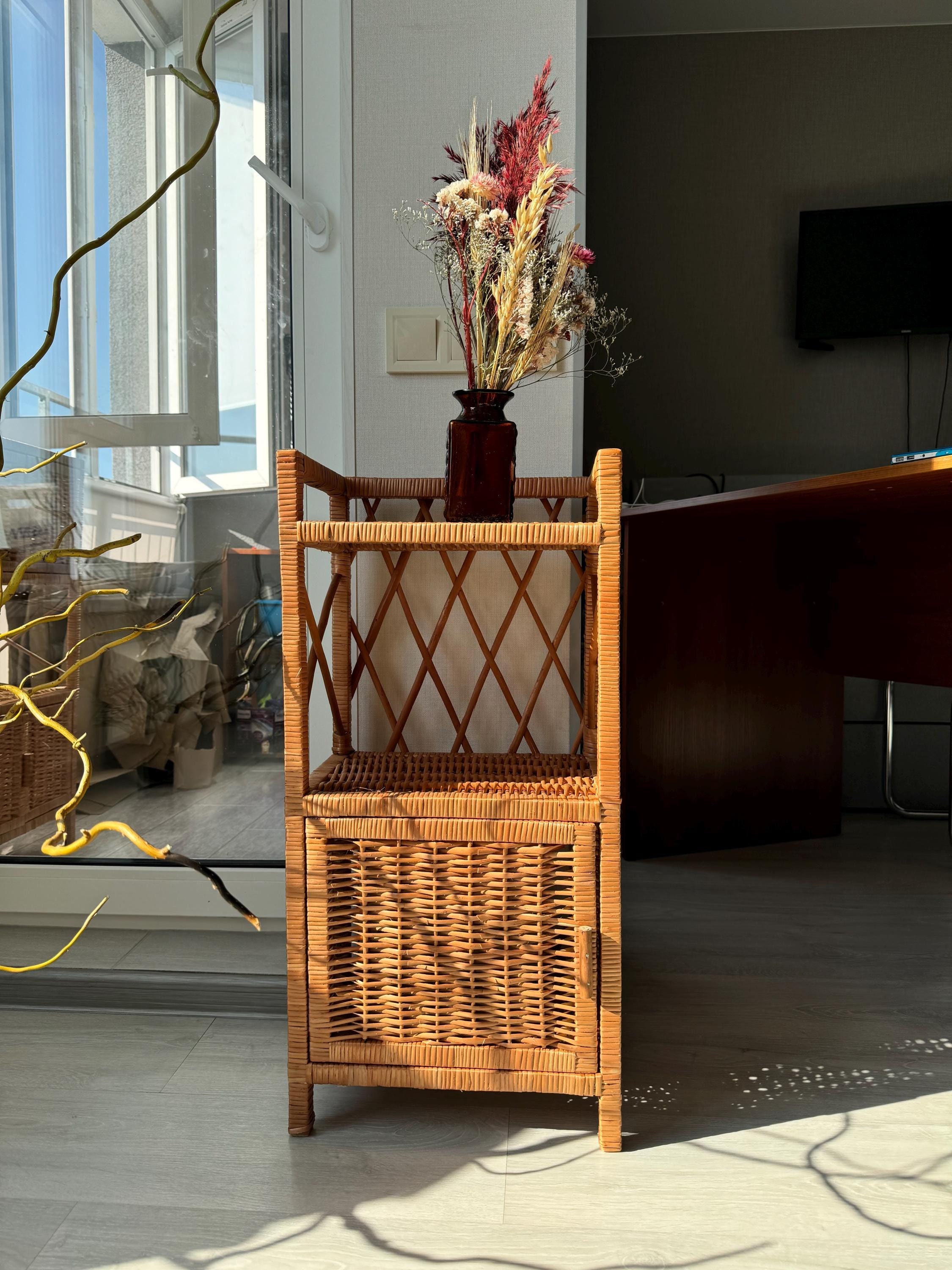 Wicker bedside table Handmade rattan nightstand ecofriendly side ta...
