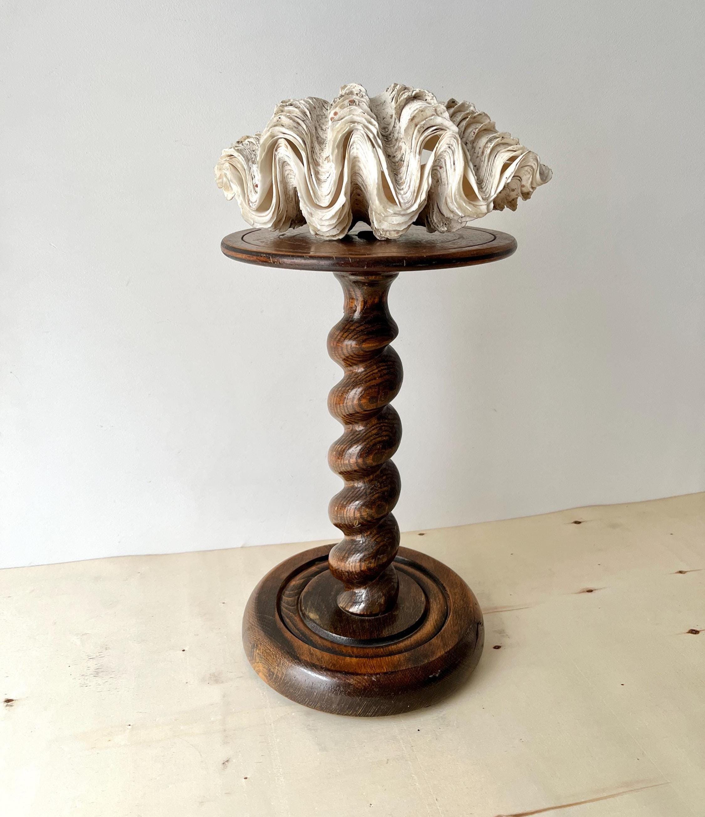 Lovely small turned wood pedestal table, dating from the 1950s. Made in France. ( Shell is not inclu...