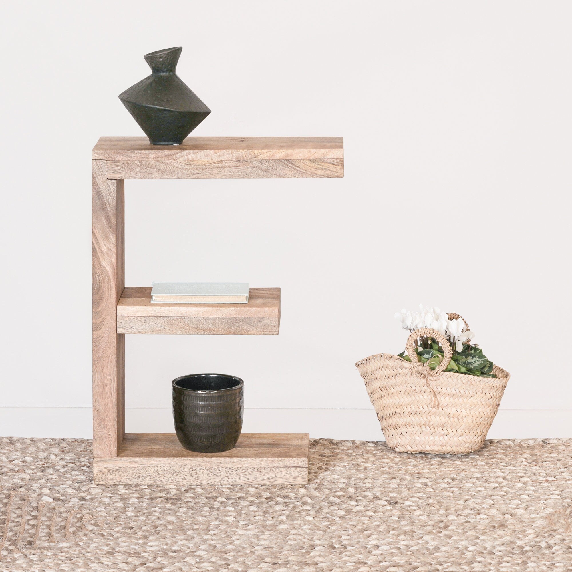 Slim E Shape Side Table Crafted From Mango Wood. H:55 x W:40 x D:15cm Simple Assembly Required.