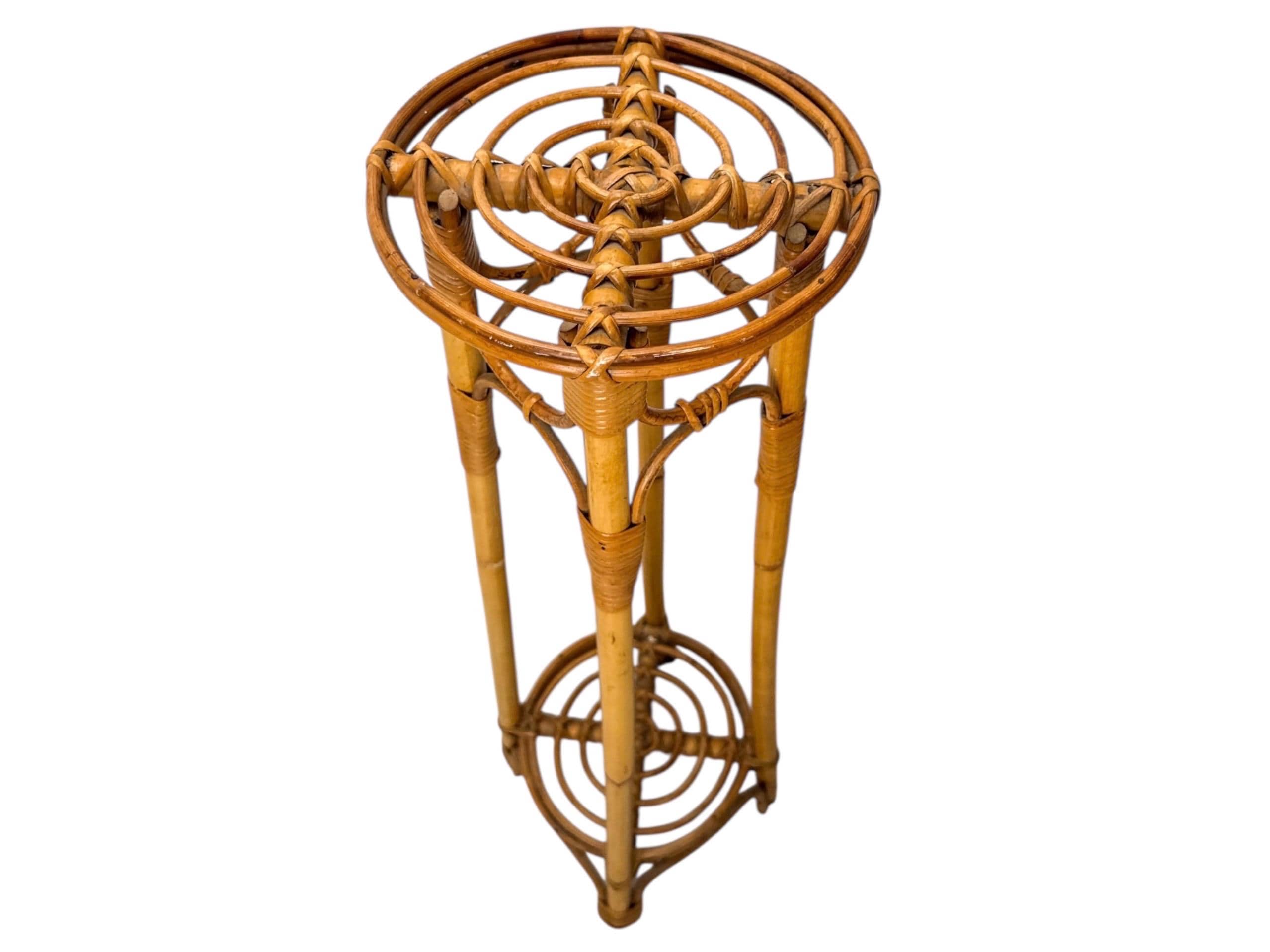 Vintage Bamboo Ratan Plant Stand Side Coffee Table 70cm Tall Organic Decor Midcentury Spain Bamboo a...