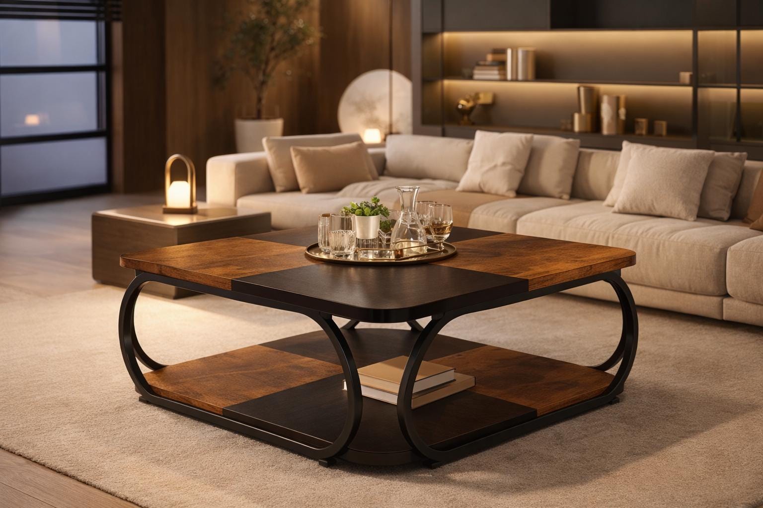 Upgrade your living space with this square 2-tier coffee table, designed in a modern farmhouse style...