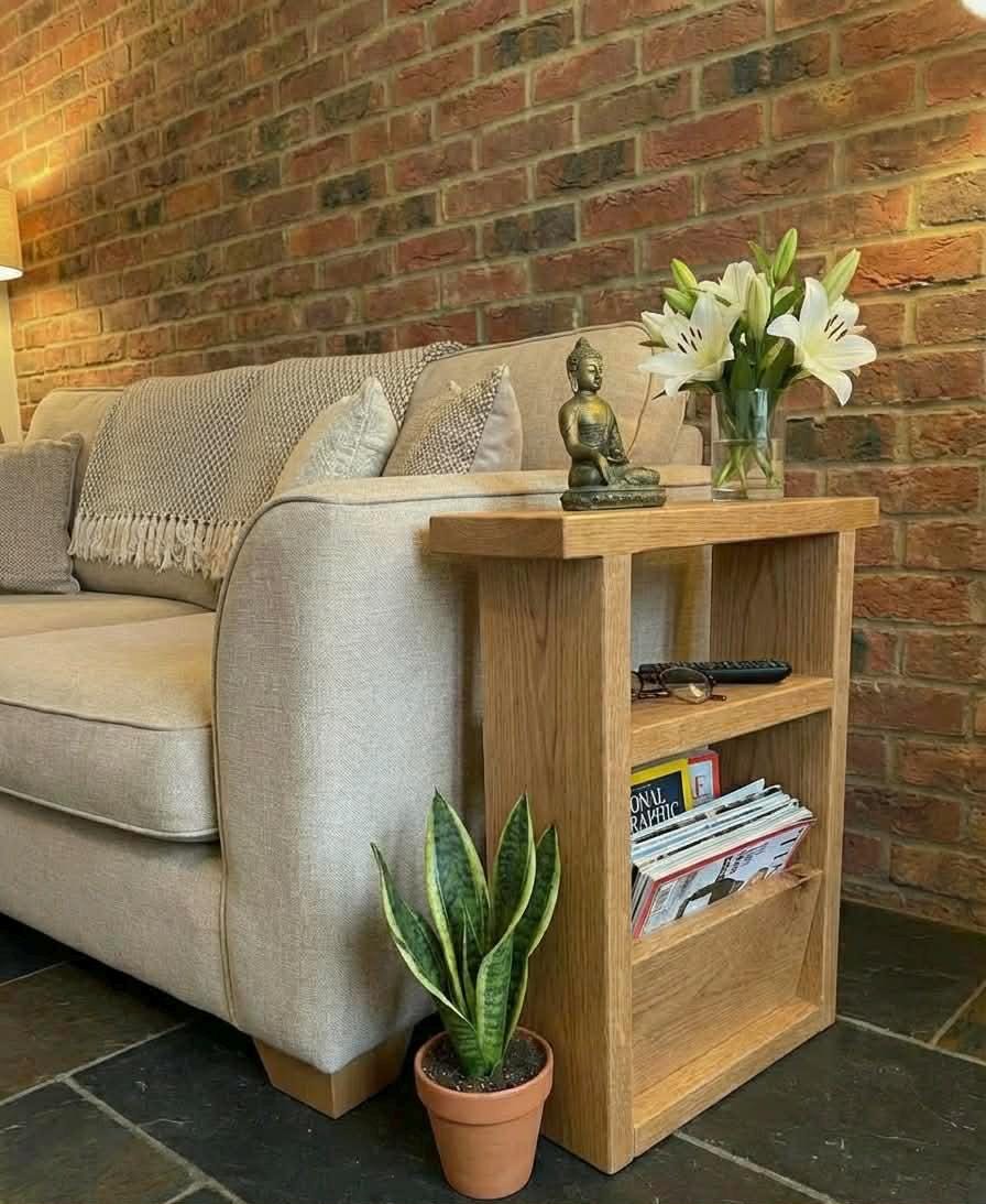 Rustic Slimline Sofa Side Table & Magazine Rack -- the perfect little companion for cosy evening...