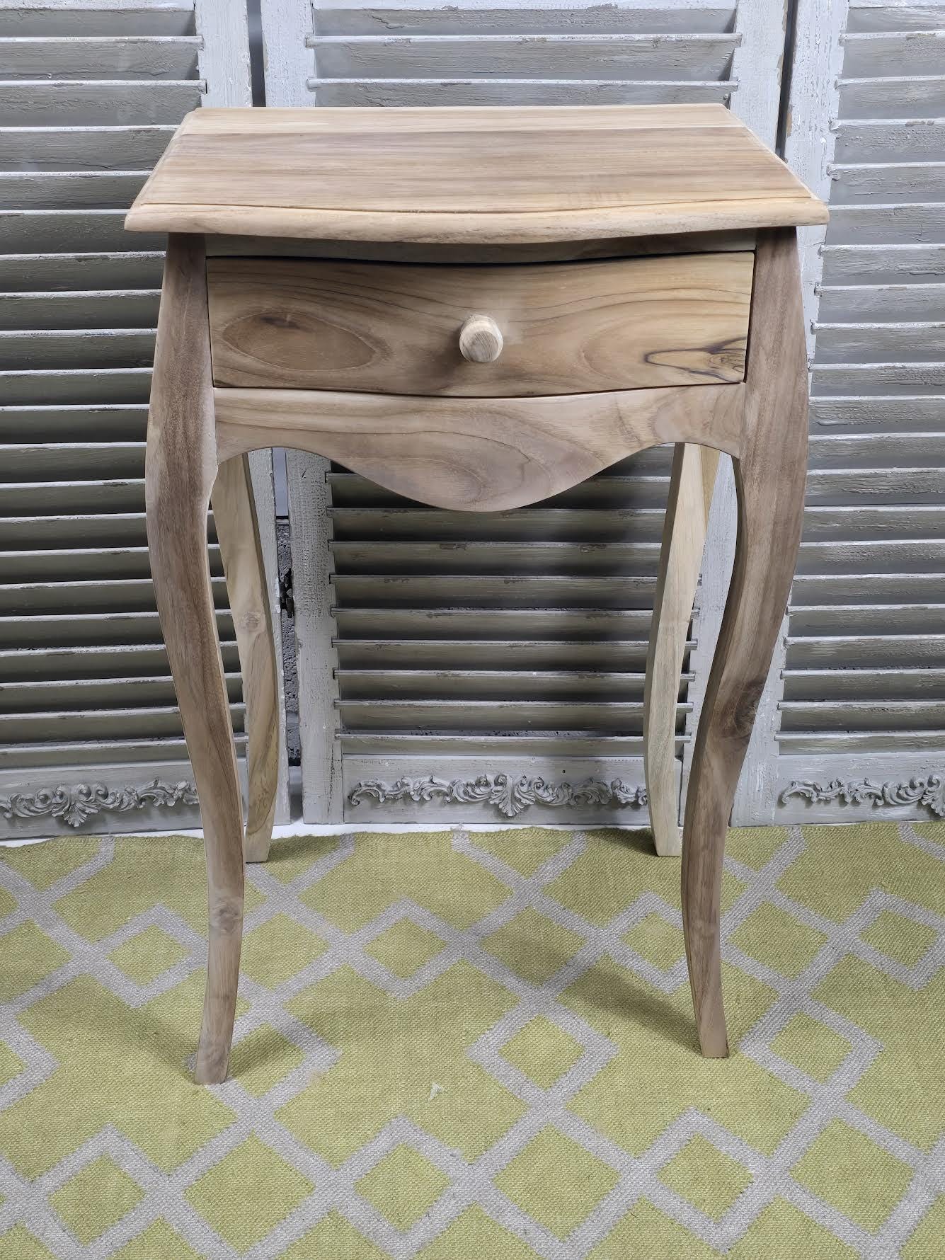 Tall Bedside table wooden 1 drawer rectangular curved design tall w...