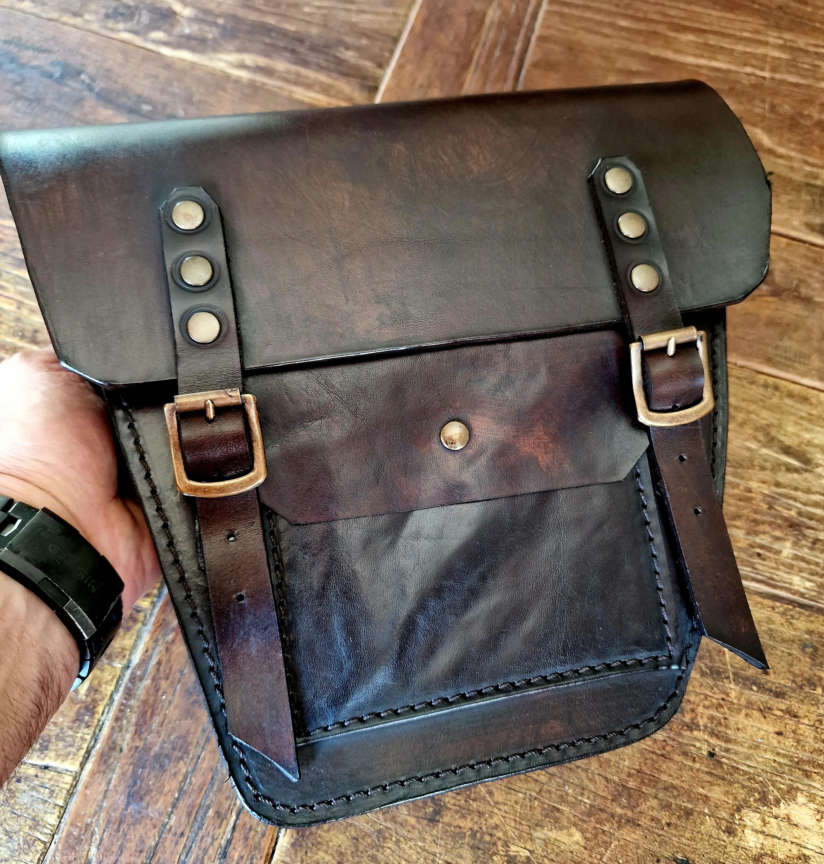 Dark Walnut leather saddlebag. Specifically designed for Triumph models. It accurately replicates th...