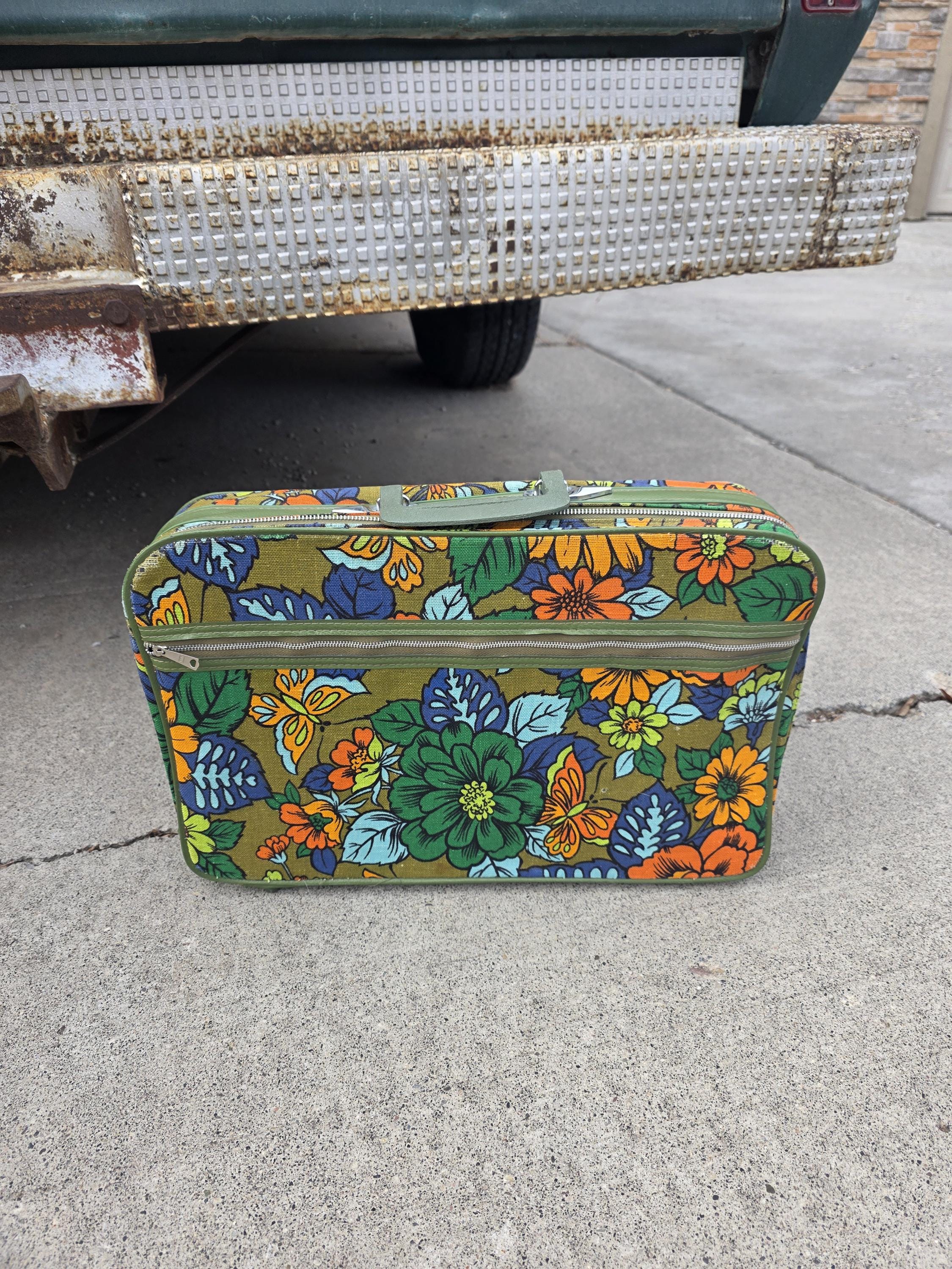 Bantam Travel Ware, Soft Sided, Green Floral Small Suitcase, Brief Case, Traveling Case, Circa 1970s...