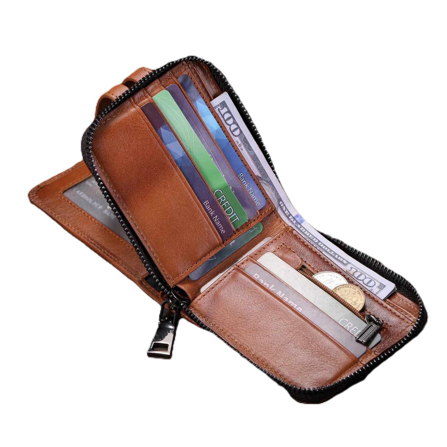 Luxury Men's Vintage Brown PU Synthetic Leather Zipper Short Wallet...