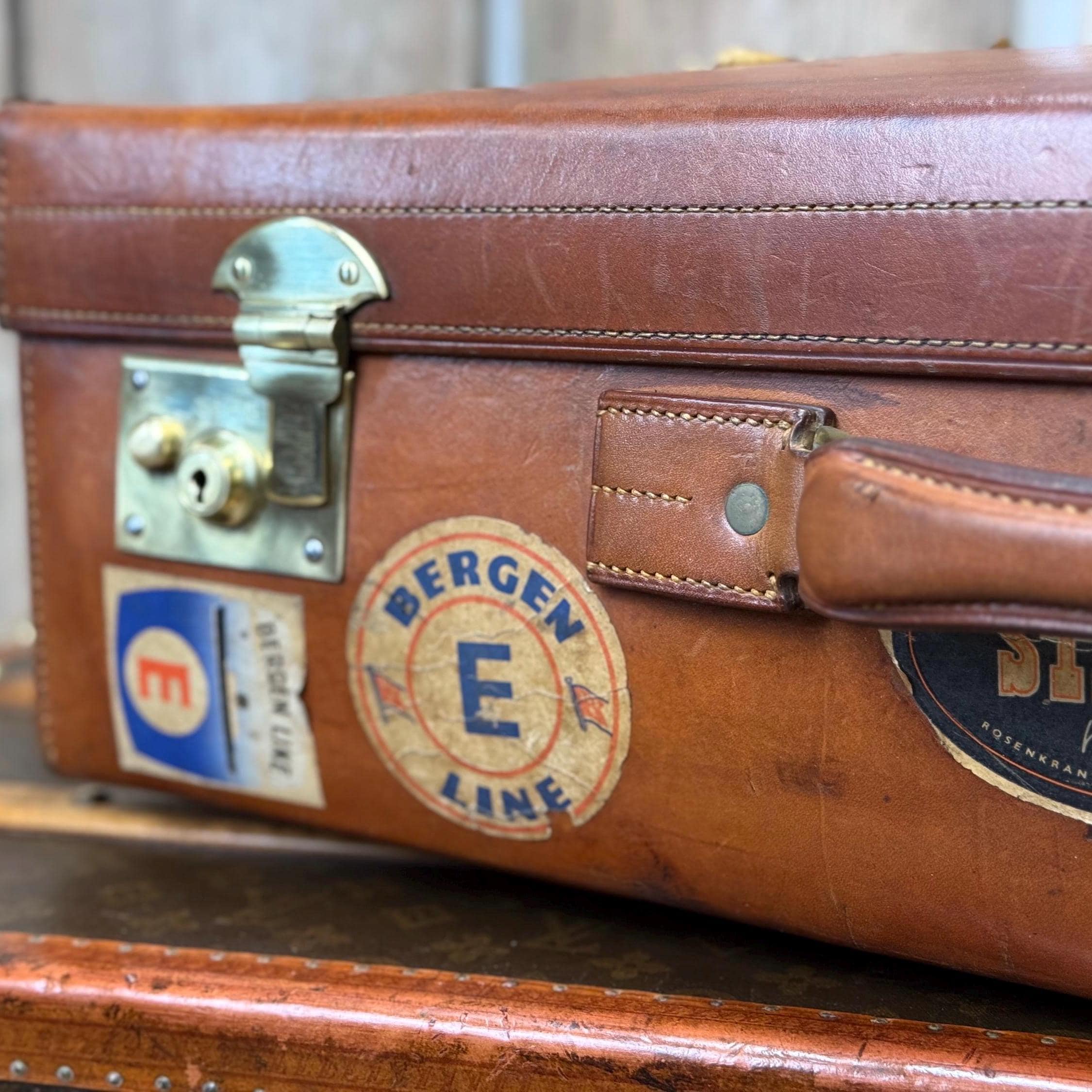 Quality English hide leather travel suitcase luggage labels Bergen ...