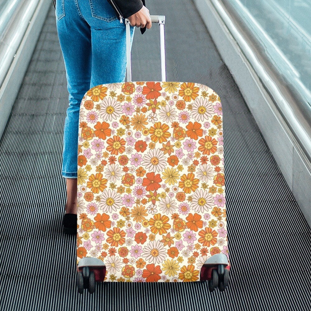 Groovy Flowers Luggage Cover, Retro 70s Funky Floral Cute Aesthetic...