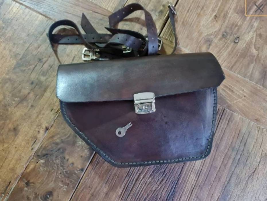 Moto Guzzi V7 right side bag with key lock. Dark walnut leather. Ha...