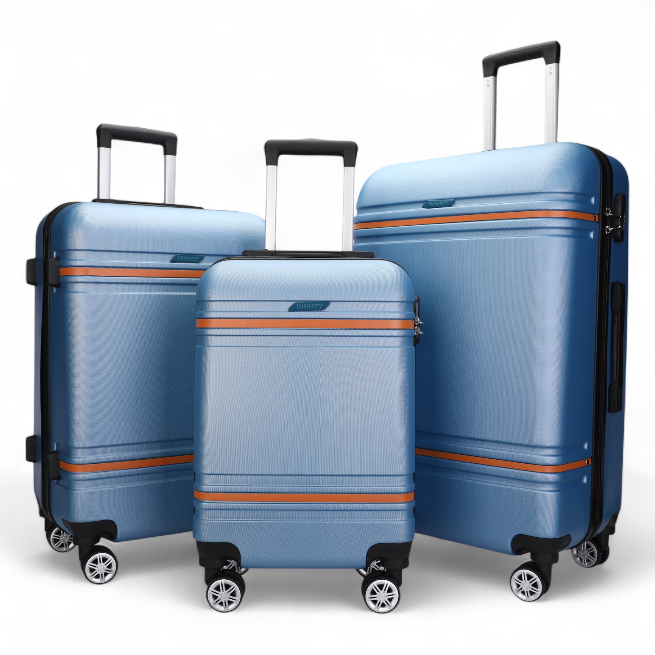 Infinity Leather Unisex Hardshell Blue Navy Cabin Suitcase Set Robu...