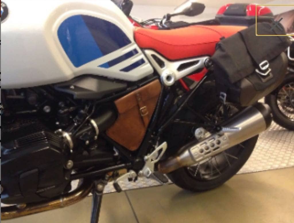 BMW R nineT all models, left side bag in aged Tuscan leather. Hand ...