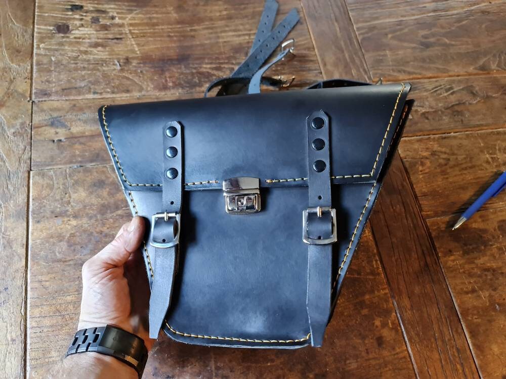 Triumph Bonneville Scrambler left side bag. Tuscan leather. Handmad...