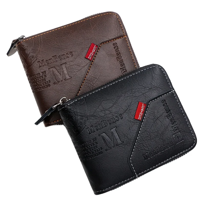 Men's Short Wallet Men's Wallet Zipper Wallet Canvas Small Leather ...