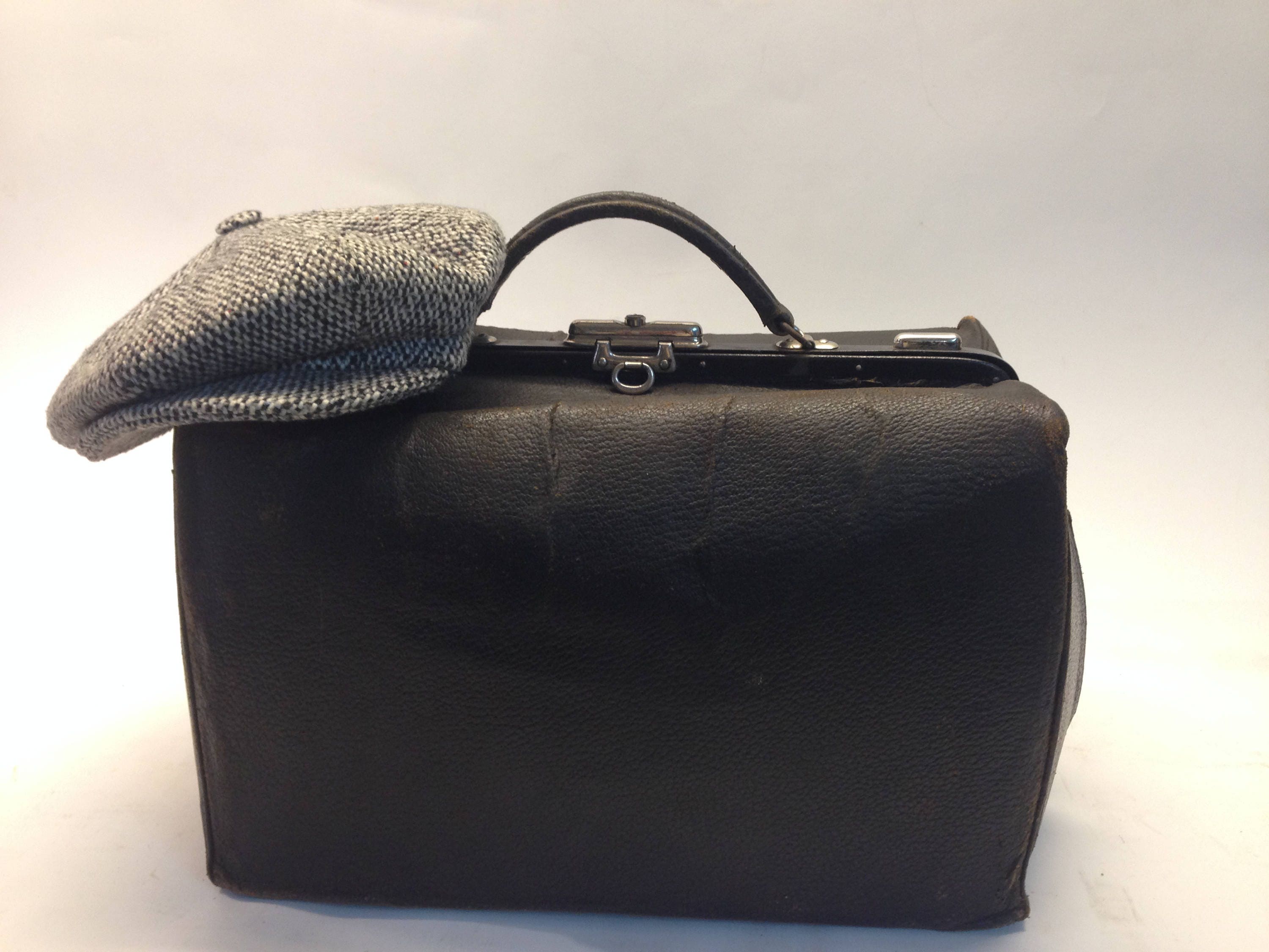 Vintage Black Leather Doctor's Bag 1930s | French Antique Gladstone...