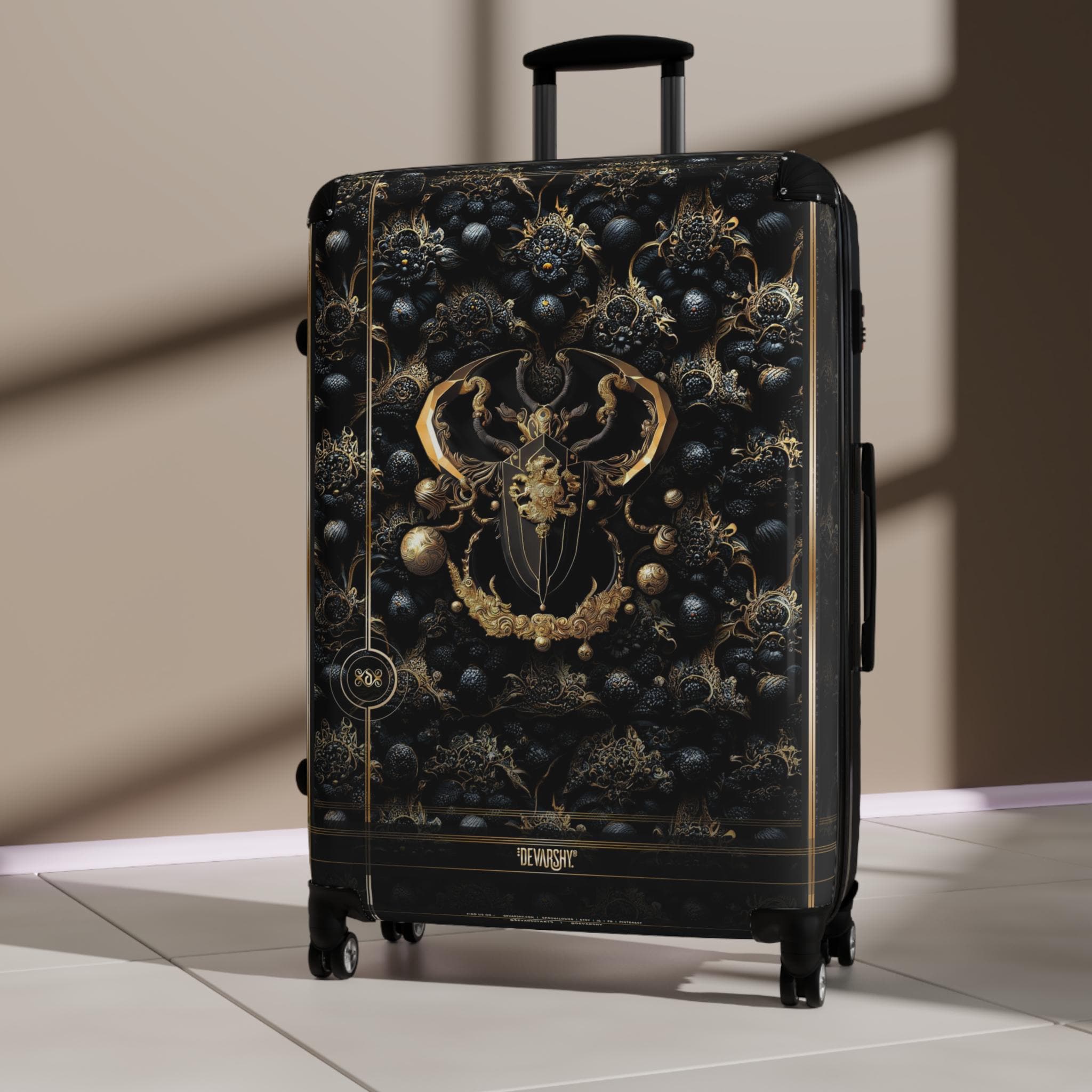 Black Scarab Suitcase, Hard Shell Carry-on, Gold Beetle Luggage, Je...
