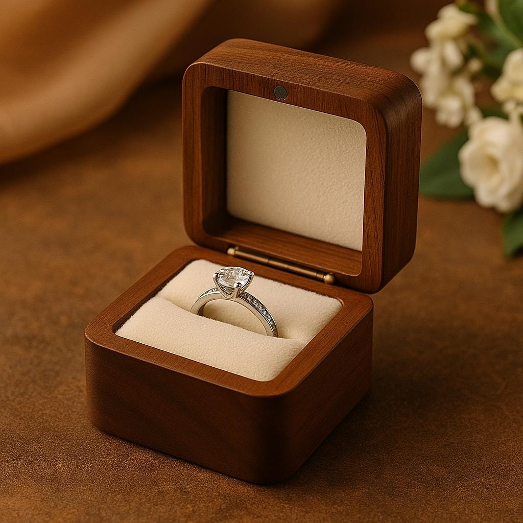 Handmade Solid Wood Ring Box: Luxury Engagement Ring Holder