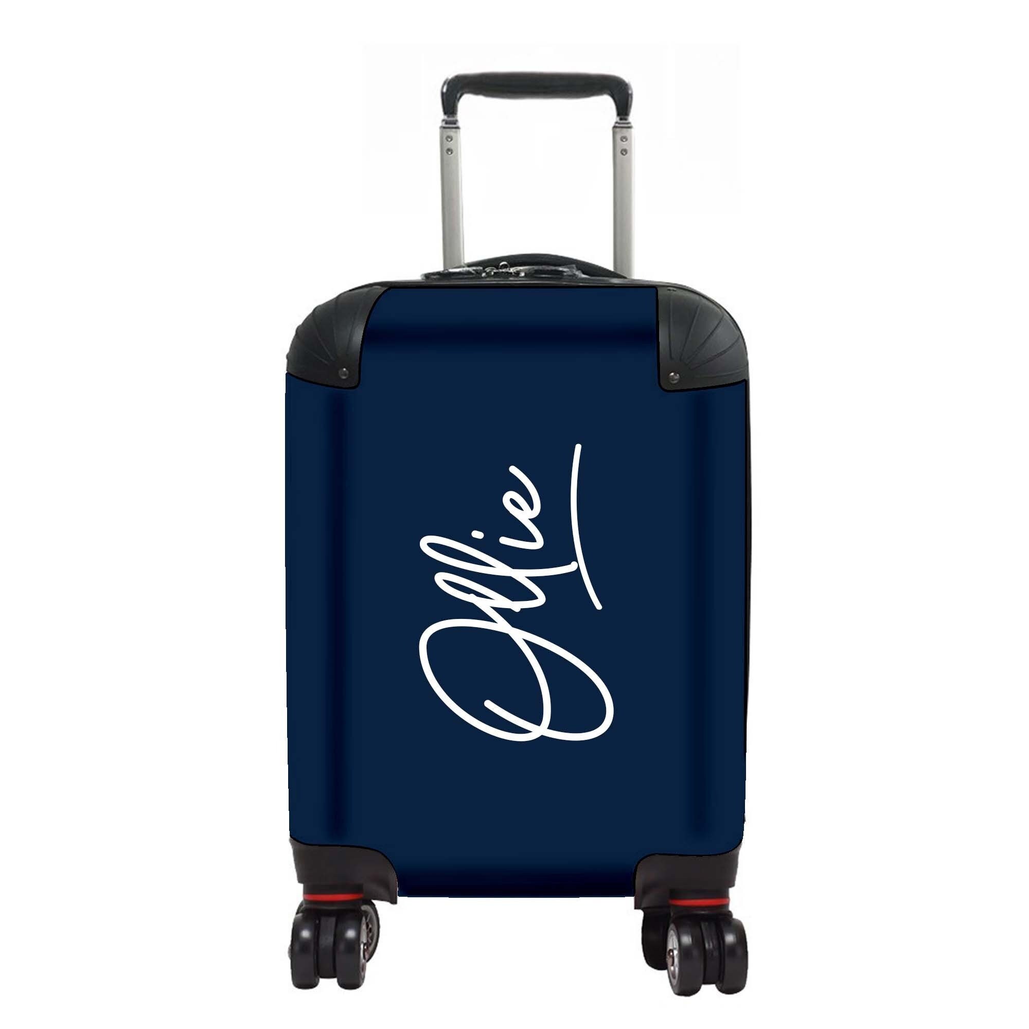 Spot your child and their suitcase with this personalised kid's luggage. This cute navy blue signatu...
