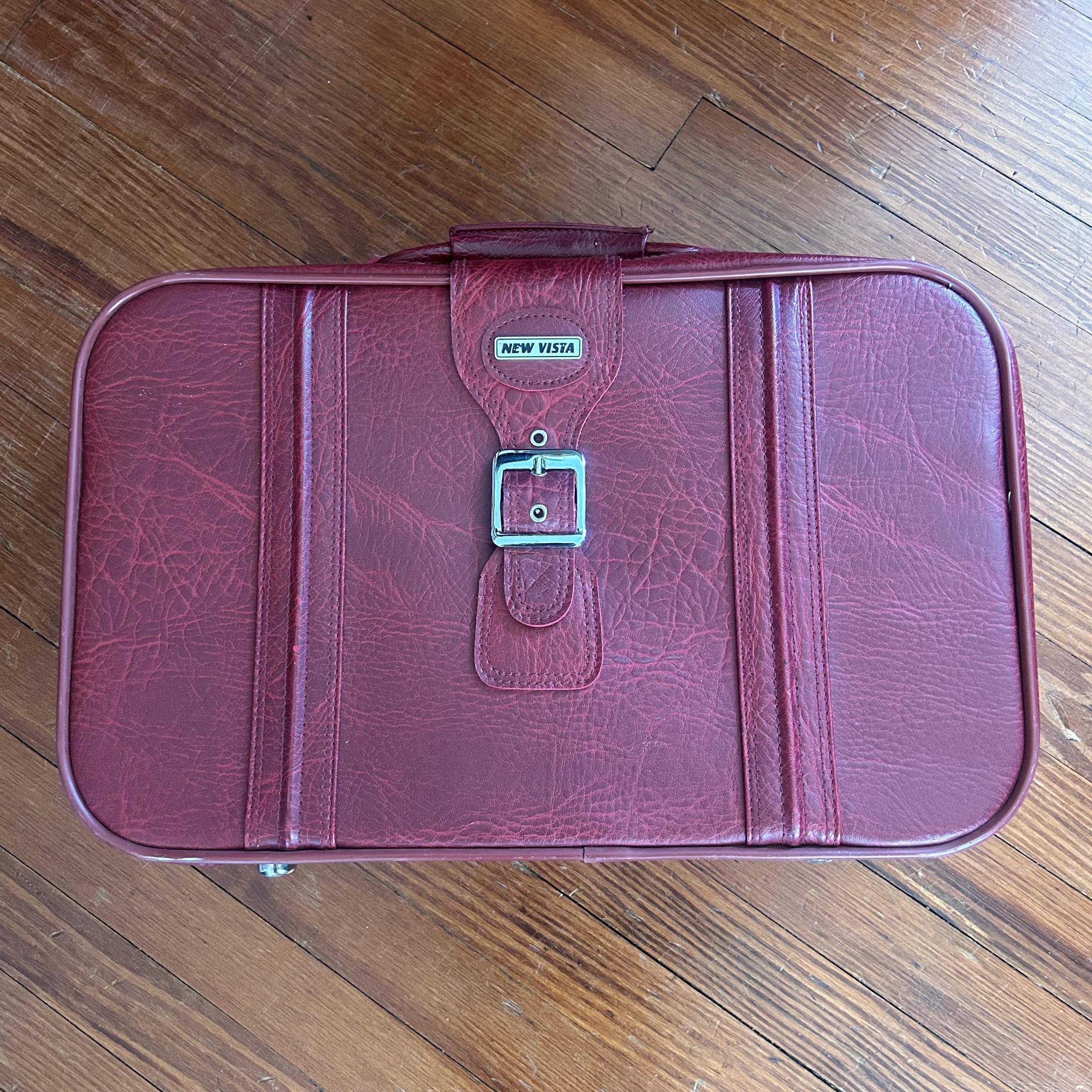 Vintage New Vista Vinyl Travel Burgundy Maroon 1970's Suitcase